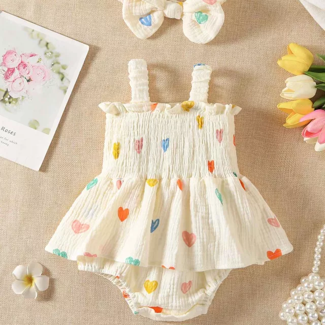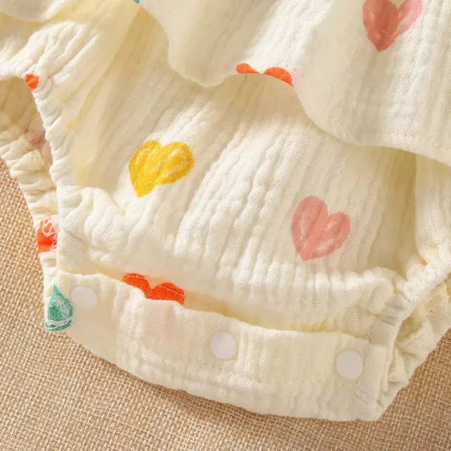 This baby girls’ romper stands out for its combination of comfort, convenience, and style. The soft cotton fabric is perfect for warmer months, ensuring your baby stays cool and comfortable. The triangle design allows for easy diaper changes, so you can focus on enjoying your day without any fuss. Plus, the cute heart print and ruffle details make this bodysuit a sweet choice for your baby’s wardrobe.