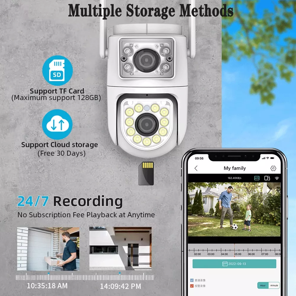 Experience next-level home and business surveillance with this advanced 10MP Dual Lens Outdoor PTZ Security Camera. Designed for ultimate security coverage, this intelligent camera combines cutting-edge dual-screen monitoring with powerful AI features, giving you peace of mind at your fingertips. Whether you want to safeguard your backyard, monitor entryways, or keep an eye on your shopfront, this high-performance device is built for total protection — rain or shine.