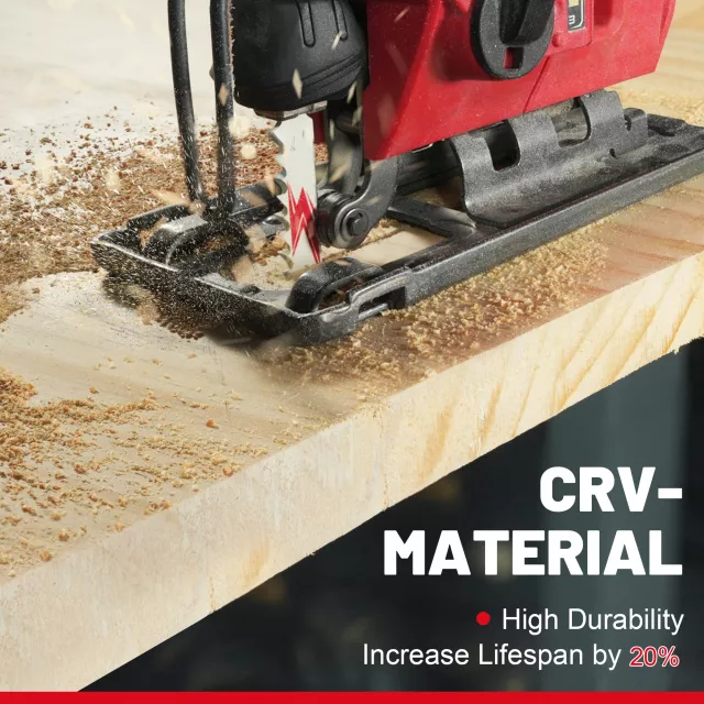 These blades are crafted from high-strength CR-V steel, giving them excellent edge retention and long-lasting durability. The fine 20 TPI teeth provide clean, high-precision cuts through softwood, hardwood, and laminated materials. Their T-shank design fits all standard jigsaws, including popular models from Bosch, Makita, DeWalt, Milwaukee, and more. This means you can plug them in and get to work—no adjustments or extra parts needed.