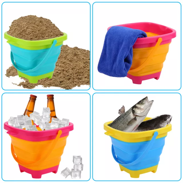 What an amazing set of beach toys! My children have been captivated from the moment we opened it. The variety in this pack is just incredible – buckets, molds, shovels, and even a mesh bag for easy carrying. I was particularly impressed with the collapsible design of the buckets which makes them so convenient to store and transport. They easily fit into our beach bag or suitcase without taking up much space at all. We've used these toys not only at the beach but also in our backyard sandbox and they've proven to be extremely durable. Plus, knowing that they're made from eco-friendly BPA-free materials gives me peace of mind about my kids' safety while playing.