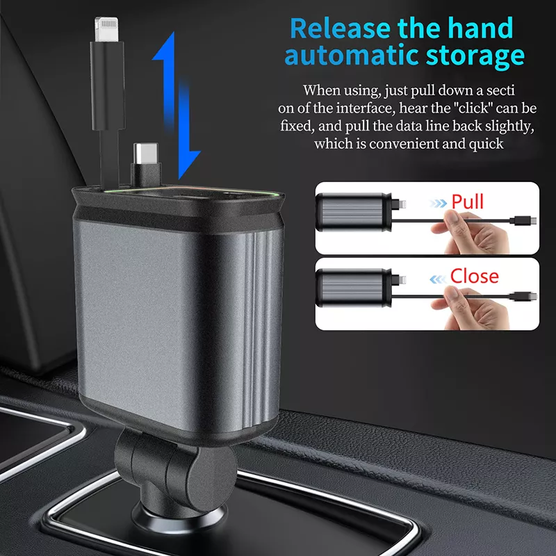 This charger is more than just a power source. It comes equipped with a mesmerizing starry projector that adds a unique ambient glow inside your car, creating a calming and enjoyable atmosphere while you drive. Dual 80cm cables—one for iOS devices and one Type-C cable—are included to give you flexible, tangle-free charging options. Plus, with fast charge ports supporting multiple protocols including USB PD and Huawei Quick Charge, your devices charge up to maximum speed safely and efficiently.