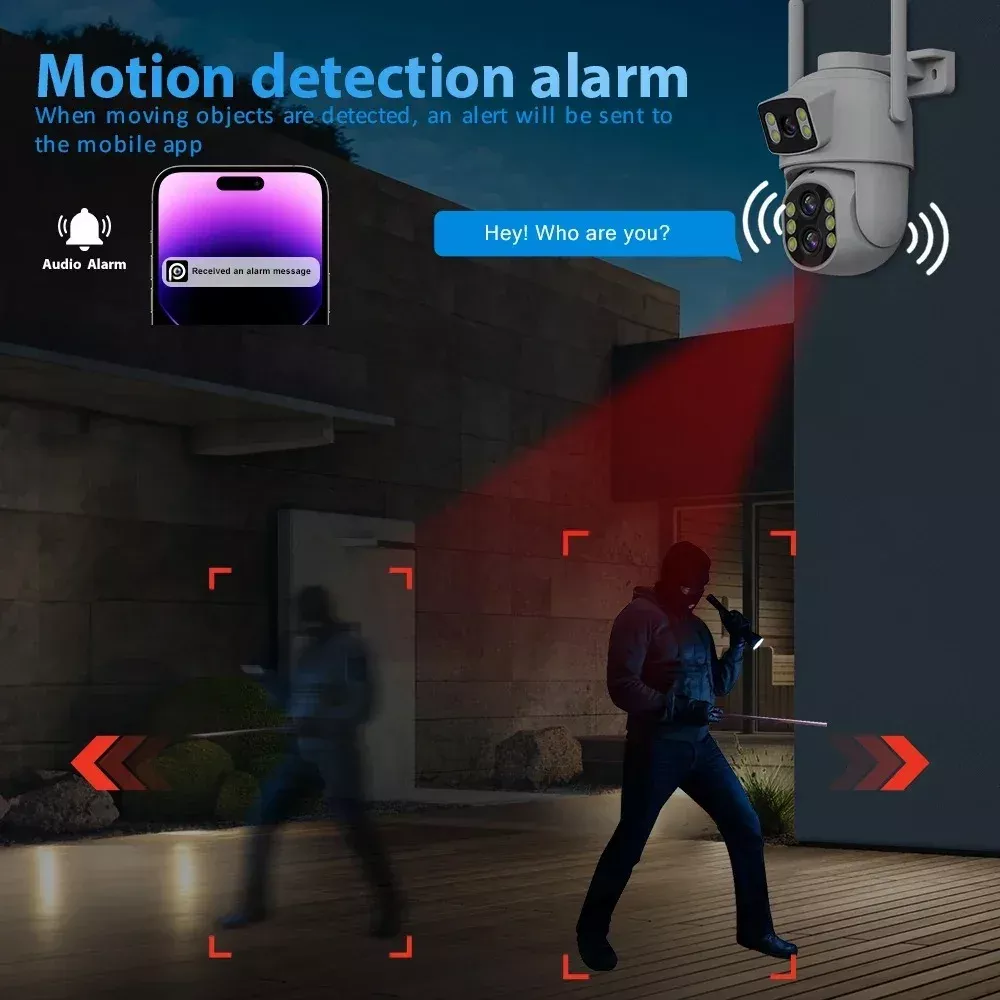 This isn’t just another security camera. Its smart AI features, two-way audio, and dual-lens configuration make it a superior choice for modern security needs. With smart detection and real-time alerts, you’ll be notified instantly if someone is near your property—no matter where you are.