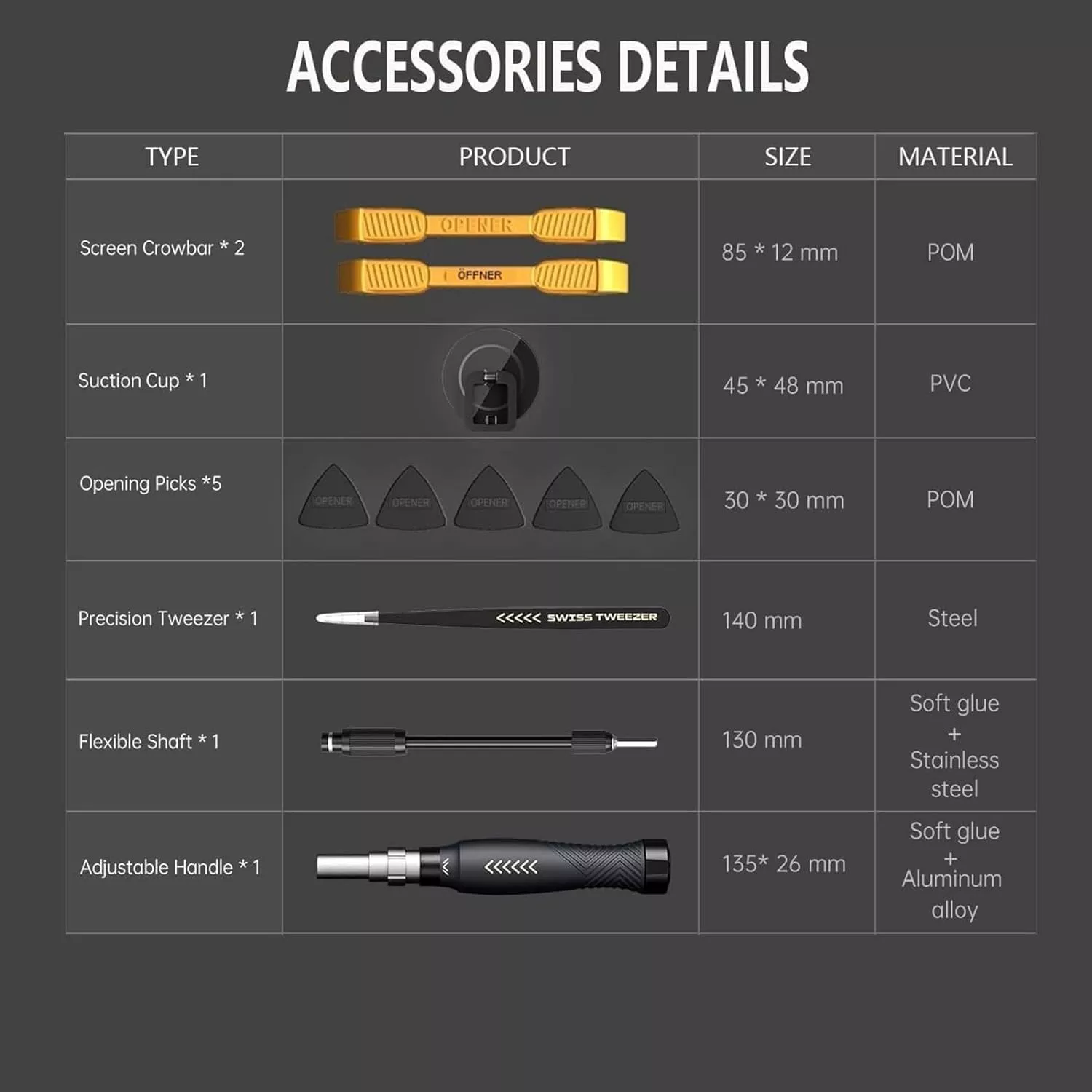 This tool set is best used when dealing with intricate electronics and small gadgets that require accuracy, patience, and the right tools. Whether you’re a repair technician, tech hobbyist, or just someone who likes to be prepared for minor emergencies, this set delivers the versatility and reliability you need in a sleek, organized package.