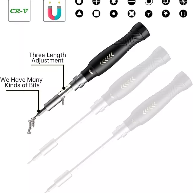Enjoy total control with an ergonomic handle designed with a non-slip 3D texture for a firm and comfortable grip. The built-in extension bar offers adjustable length, and a flexible shaft lets you reach screws hidden in tight or awkward angles. All accessories are thoughtfully arranged in a dedicated organizer box for quick access and hassle-free storage.