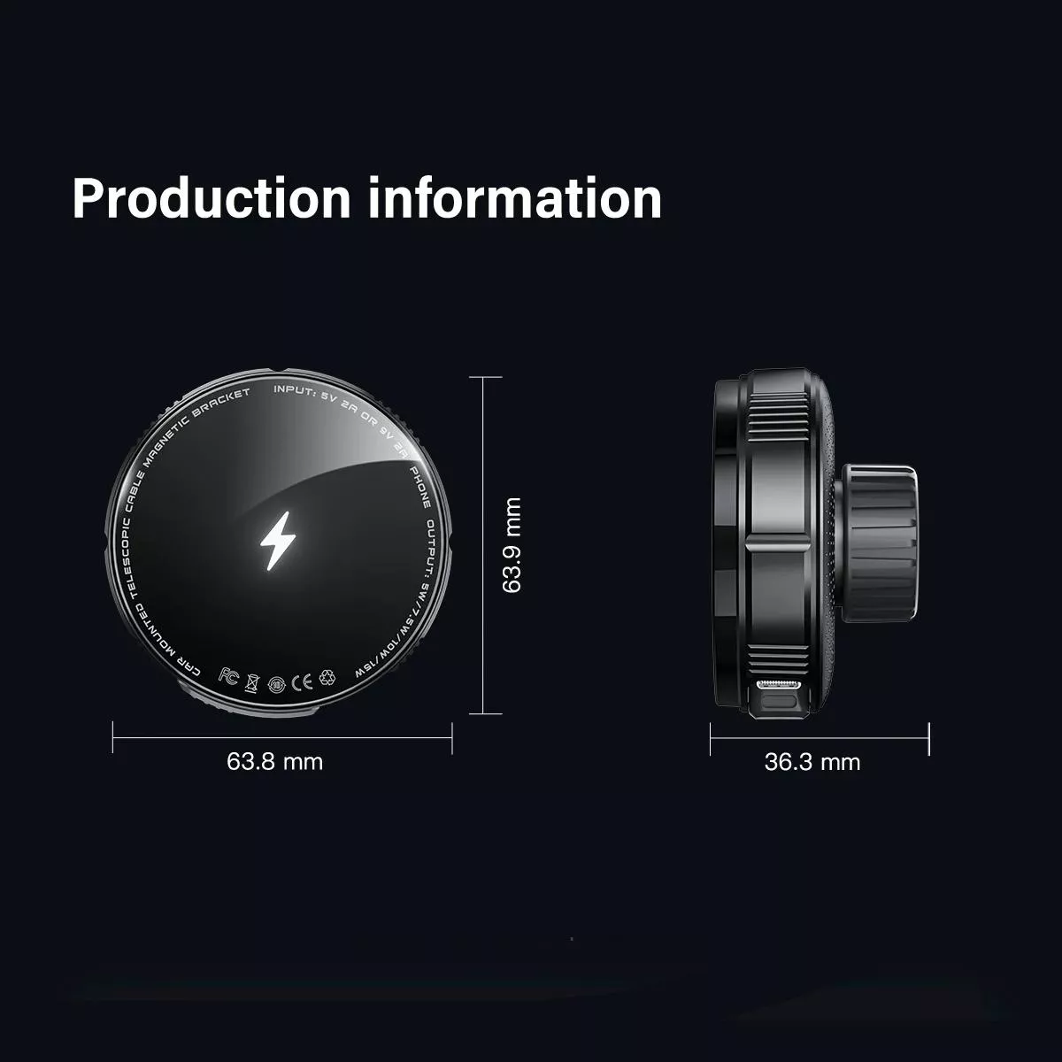 This device truly combines practicality and efficiency into one sleek package. With its robust magnetic grip, there's no risk of your phone slipping off mid-drive. It delivers quick charge capabilities with its impressive 15W power - perfect for those long drives where you need your battery life intact. The addition of a retractable cable is simply genius; maintaining tidiness within our vehicle has never been easier.