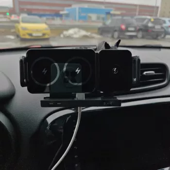 This device is a lifesaver on long road trips! Not only does it charge my phone super quickly, but it also rotates automatically making navigation so much easier and safer. Plus, it doesn't take up much space and fits perfectly in my car. Highly recommended for those who spend a lot of time on the road.