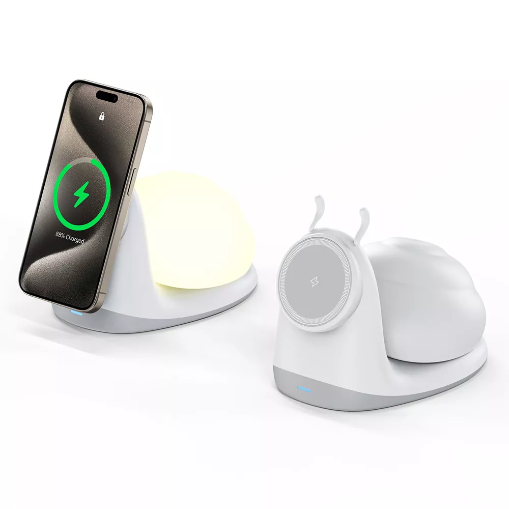 This charger is a lifesaver! It charges super fast, holds my phone securely, and the snail night light adds a nice touch to my bedside table. Couldn't ask for more.