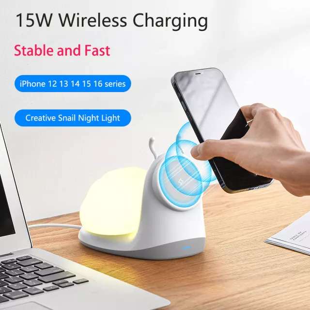 I've been using this wireless charger for a few weeks now and it's honestly one of the best purchases I've made in a while. Not only does it charge my phone super fast, but the built-in phone holder is seriously handy - no more propping my phone up against random objects! Plus, the snail night light gives off just enough glow to find my way around without being too bright. I'm really happy with this product .