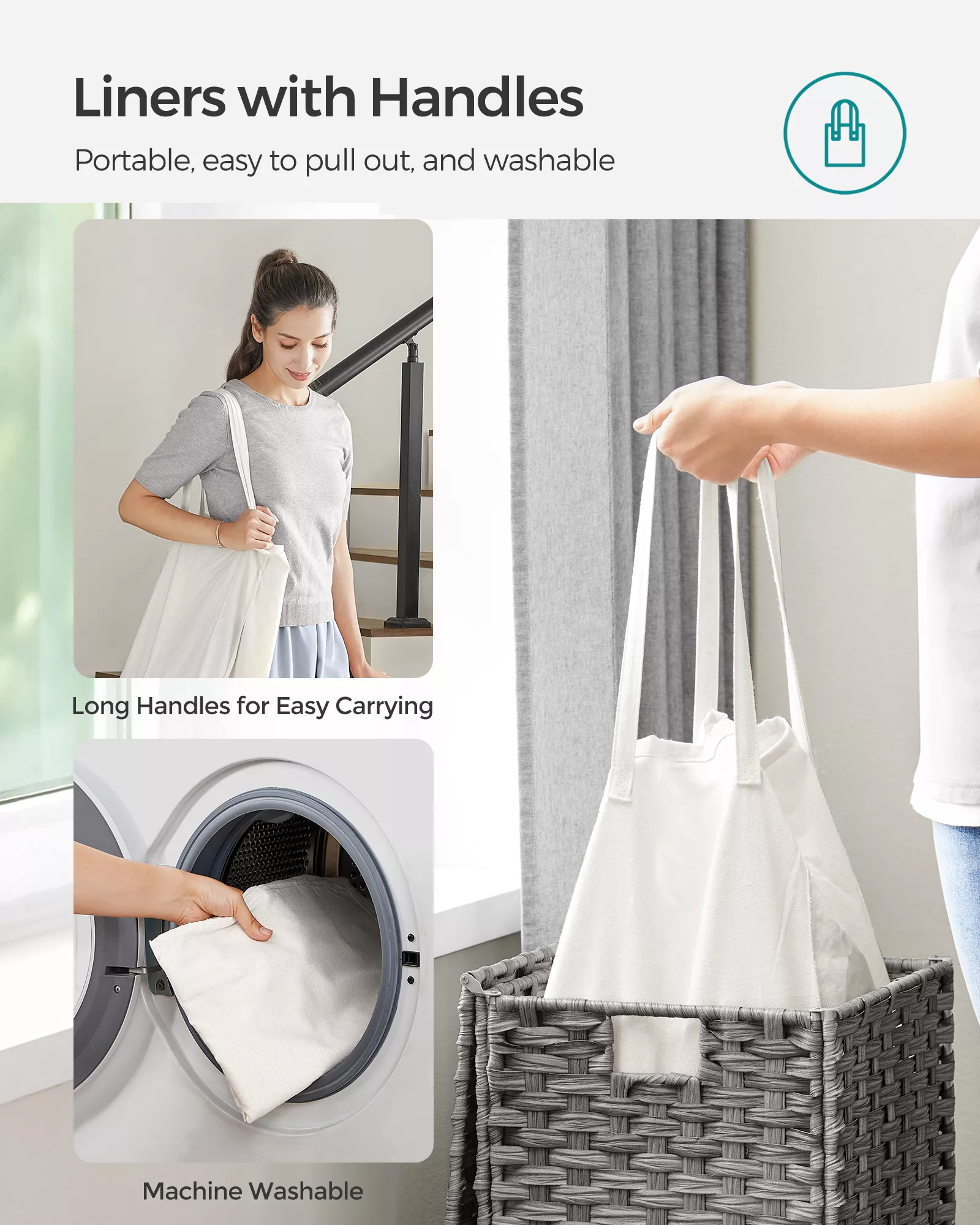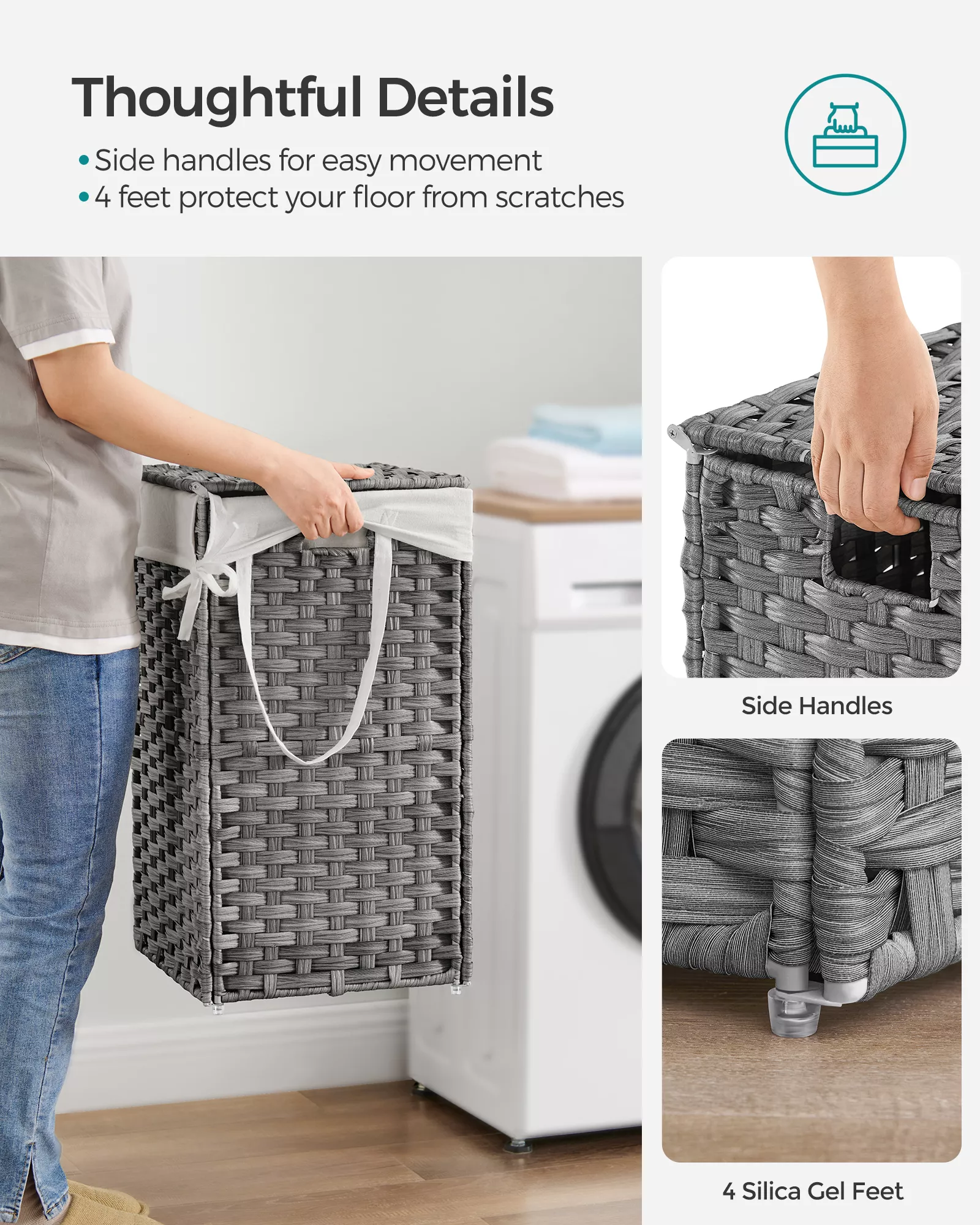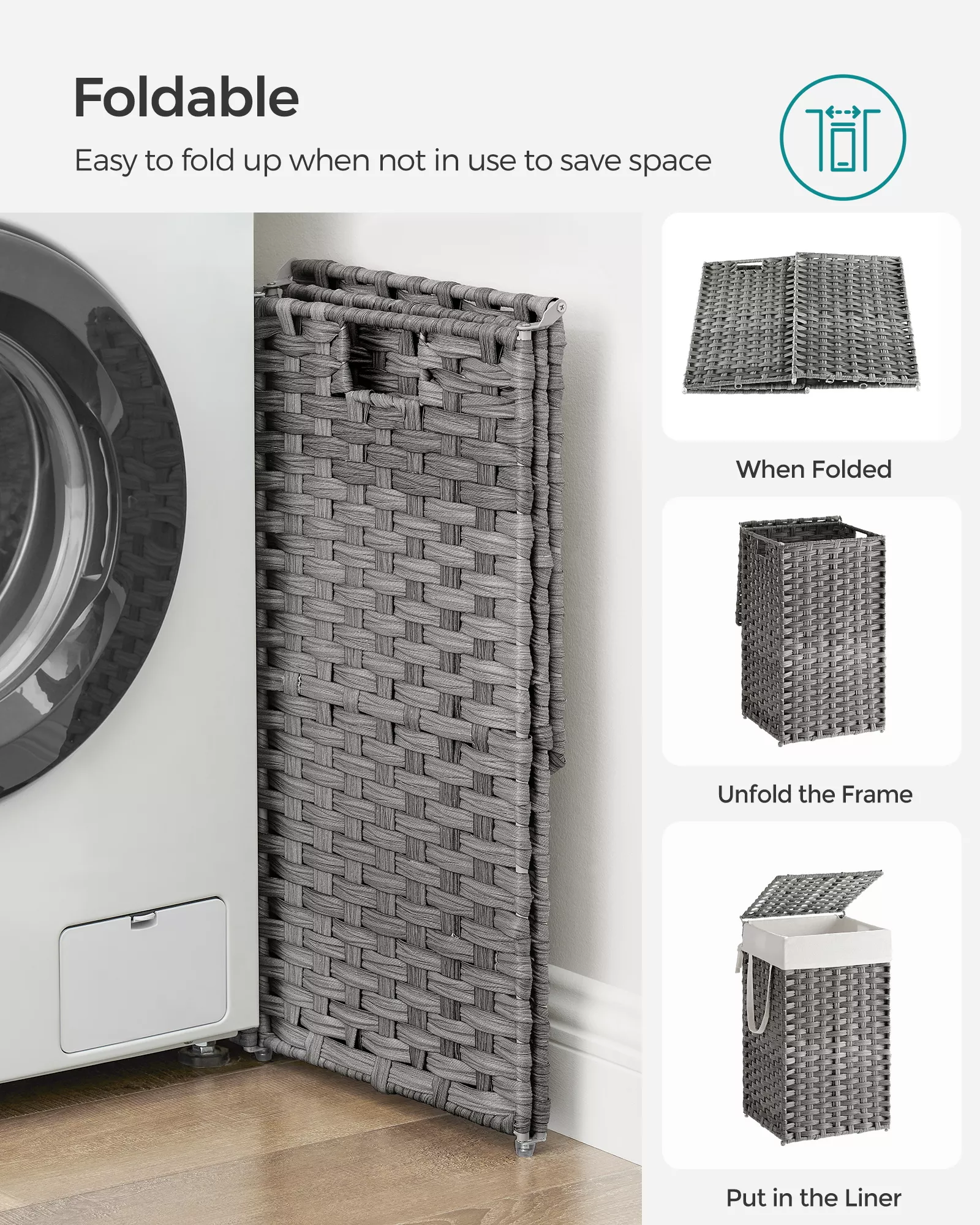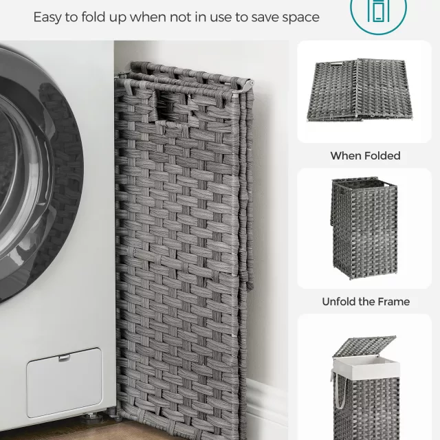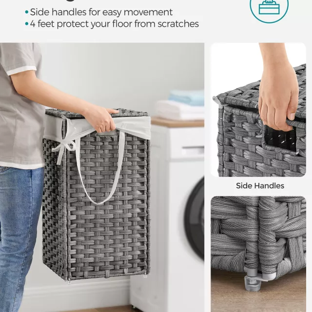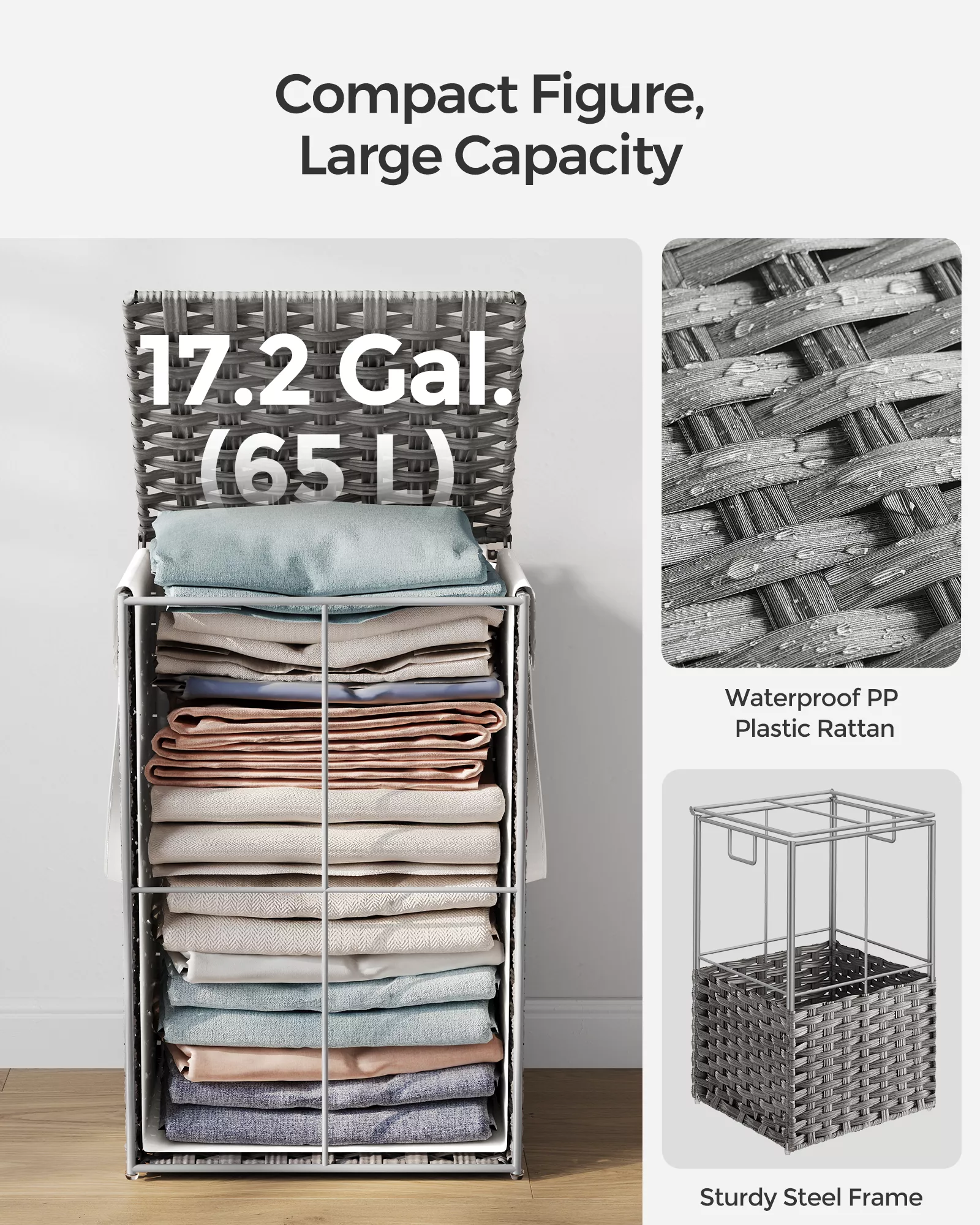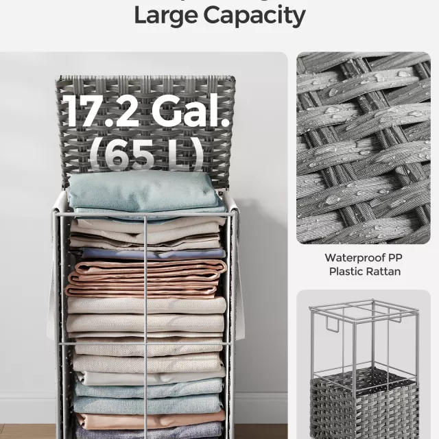 This hamper includes a well-designed lid that’s easy to open with one hand, helping you keep dirty laundry hidden and unpleasant odors contained. The removable, machine-washable liner with sturdy handles allows for easy transport and keeps your laundry routine hygienic and hassle-free. Thanks to the ventilated, waterproof PP rattan construction, clothes stay dry and fresh while the solid metal frame supports up to 44 pounds for lasting durability.