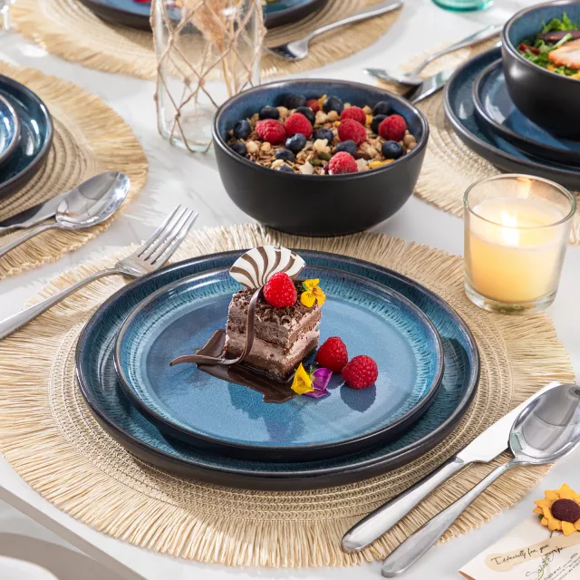 What sets this collection apart is its stunning, handcrafted appearance achieved through a reactive glazing technique. This high-temperature process results in vivid color variations and subtle textures, making each dish visually unique. Combined with its durability and ease of use, this set offers the perfect balance of form and function.