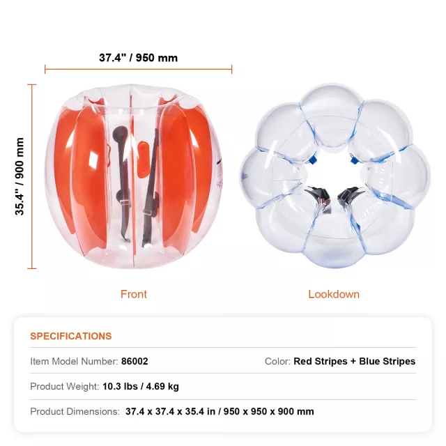 • Perfect Fit: Ideal for players aged 6 and up, our bumper balls are designed for individuals ranging from 3.6ft to 5.2ft tall, and weighing between 110-330 pounds. These human hamster balls offer the perfect size and fit for hours of active fun.