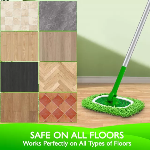 Ideal for both daily dusting and deep cleaning sessions, these microfiber chenille mop pads effortlessly switch between dry and wet use. Dry pads attract and lock in dirt, hair, and dust like a magnet—perfect for quick touch-ups. Wet, they soak up spills and scrub away stuck-on messes with ease. Use them on any surface—hardwood, tile, laminate, marble, vinyl, cement, and more—without fear of scratching or damage.
