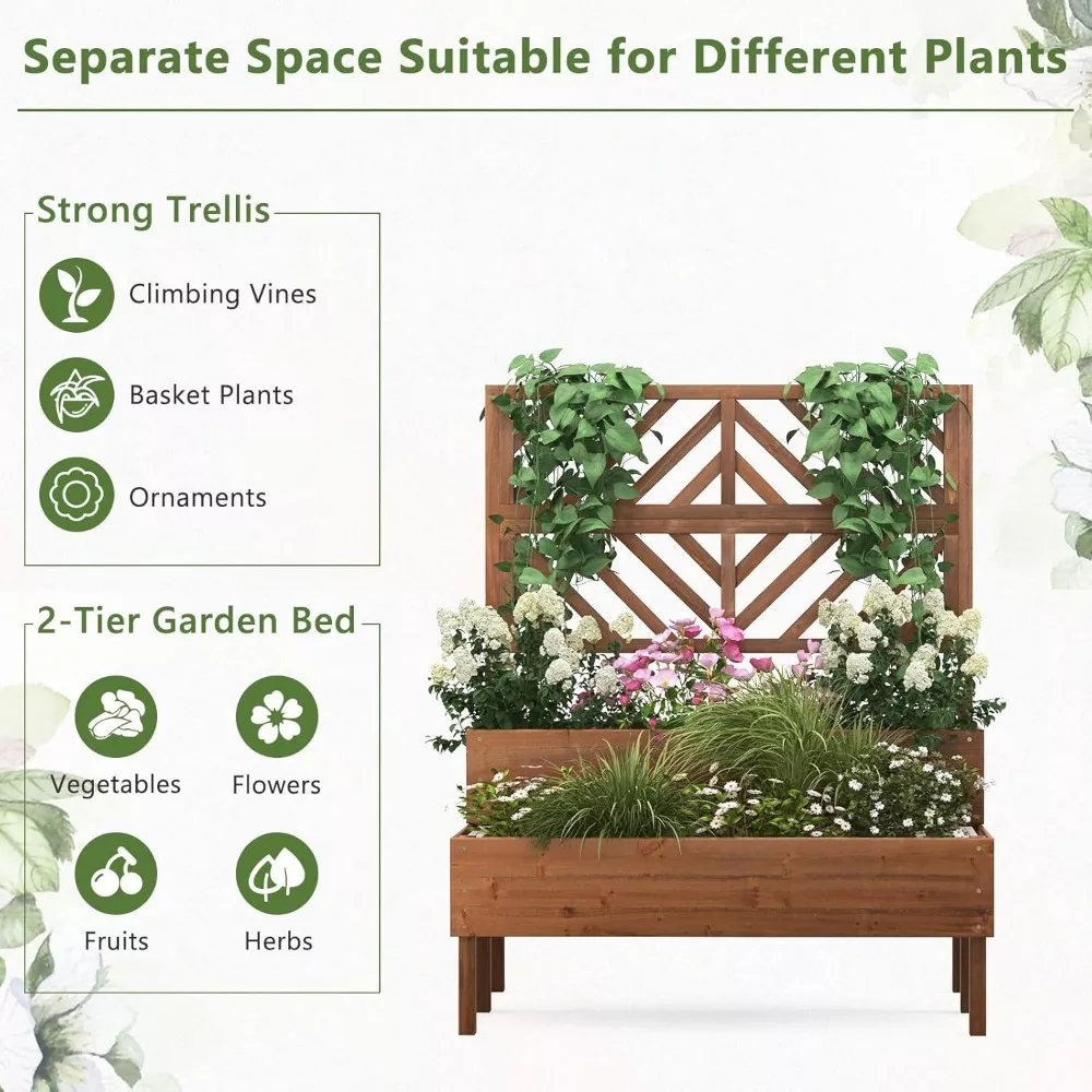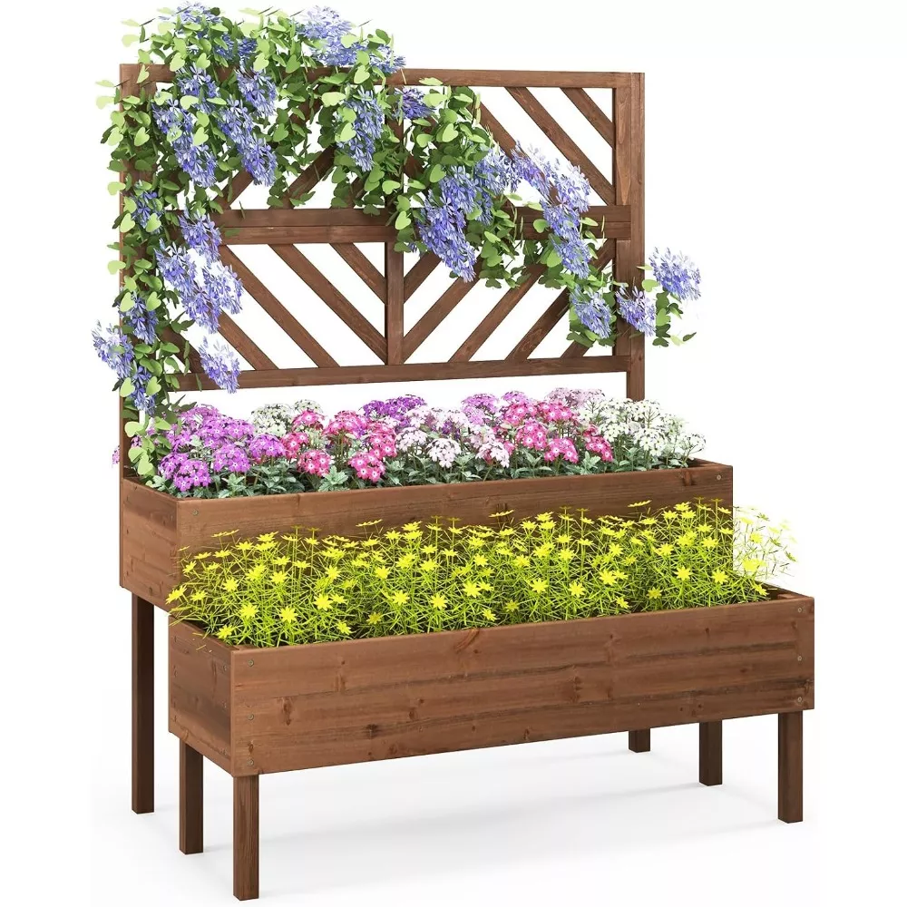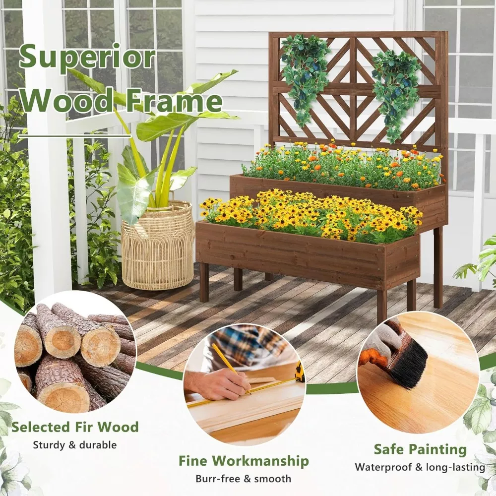 Transform your patio, balcony, or backyard into a flourishing green space with this beautifully designed 2-Tier Standing Planter Box. Made for garden lovers of all levels, this elevated garden bed combines functionality with elegance, offering the perfect solution for growing your favorite flowers, vegetables, herbs, and even climbing vines. Its smart design and natural wood finish make it a standout piece in any outdoor setting, blending seamlessly into gardens, decks, and courtyards.