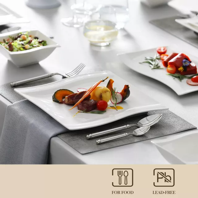 The harmonious mix of square and rectangular plates, plus soup and dessert bowls, gives you endless serving possibilities—perfect for formal dinners, weekday meals, or entertaining guests.