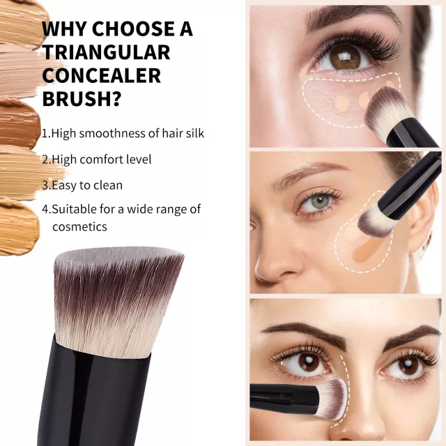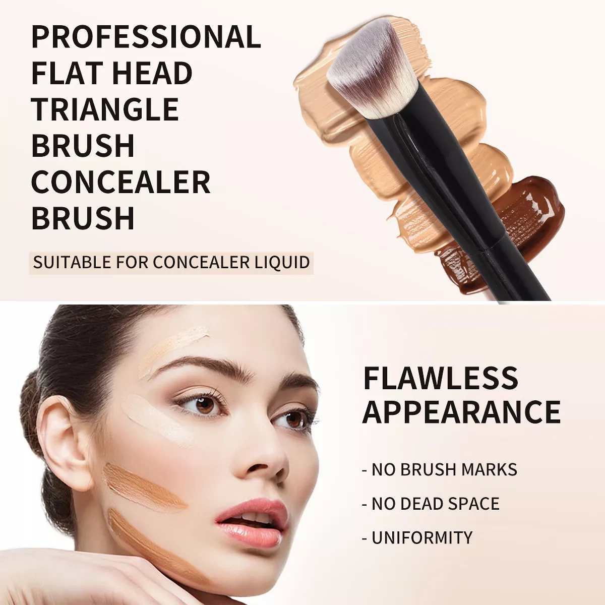 • Triangle Concealer Brush: Precision-crafted for seamless concealer and setting powder application — especially under the eyes and around the nose.