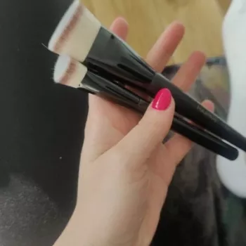 Crafted with ultra-soft synthetic fibers, each brush glides smoothly over the skin, distributing product evenly without absorbing excess. The set includes a triangle concealer brush and a dense angled foundation brush — both designed to deliver flawless coverage where you need it most. Ideal for blending liquid foundation, cream concealer, powders, and more, these brushes will help you create a seamless base that lasts all day.
