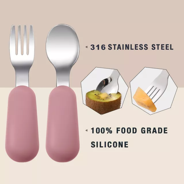 Make feeding time more enjoyable and convenient with this 2PCS Silicone Stainless Steel Fork Spoon Set – a must-have for any growing family!