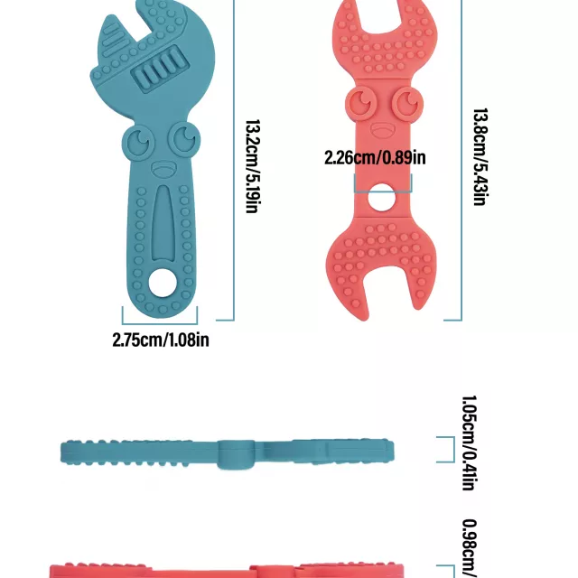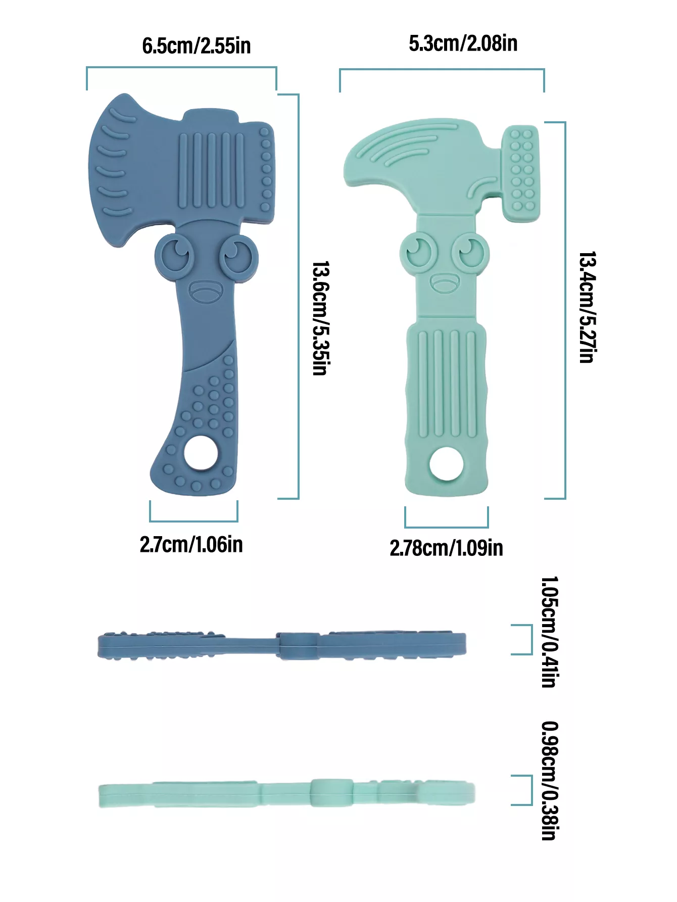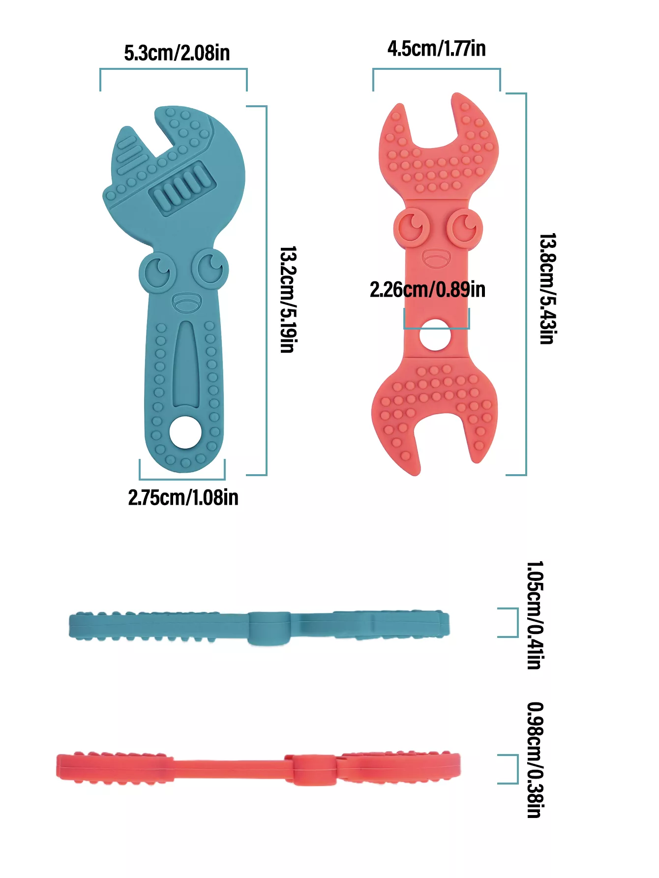 Say goodbye to fussy teething days and hello to happy smiles with this adorable 2-pack of silicone teething toys shaped like fun cartoon tools. Made from 100% food-grade silicone, these baby-friendly teethers are the perfect blend of comfort and early learning. Designed to ease sore gums while keeping tiny hands busy, this set is more than just a pain reliever – it’s a developmental toy that grows with your baby.