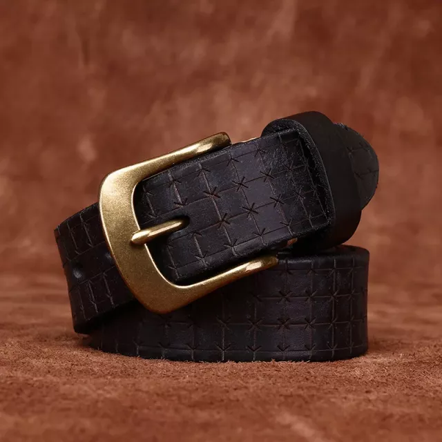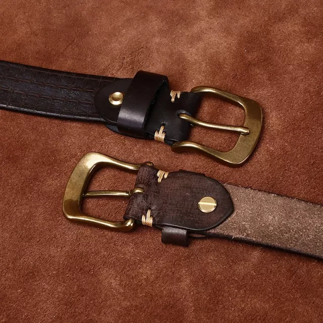 This genuine leather men's belt is nothing short of amazing! Its worn-in finish gives off an appealing retro vibe that fits perfectly into my everyday style. Made from premium first-layer cowhide leather, you can really feel the quality when you hold it; it's thick yet flexible enough to ensure comfort throughout the day. But what truly sets this belt apart is its solid brass pin buckle – not only does it provide secure closure but also adds a dash of sophistication that elevates any outfit instantly. Available in multiple color choices, each one more versatile than the last – this isn't just another accessory; it’s become an essential part of my wardrobe!