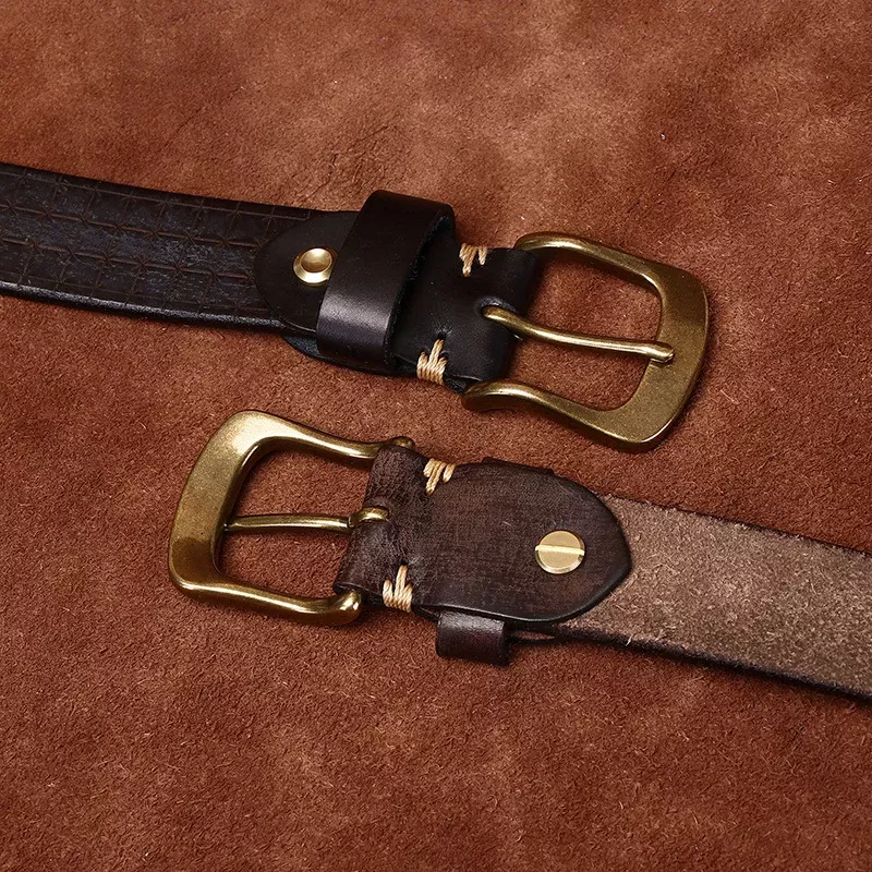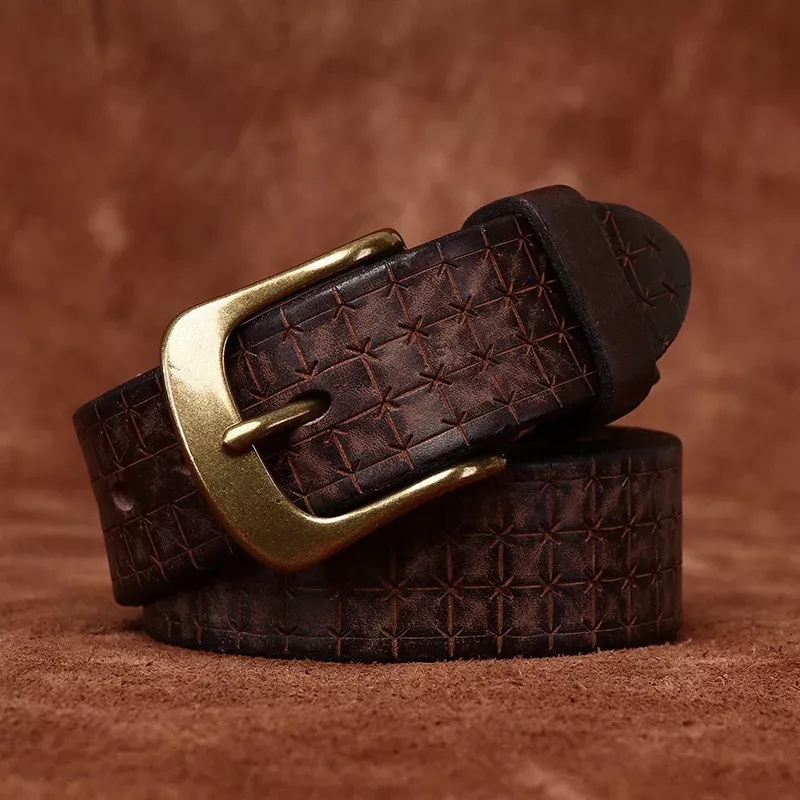 Step up your wardrobe with this 3.8cm wide genuine cowhide leather belt, designed specifically for men who value both style and durability. Crafted from first-layer pure cowhide and featuring a solid brass pin buckle, this belt offers a perfect blend of strength and vintage charm. The 5.5mm thickness provides excellent sturdiness, ensuring it stands up to daily wear while adding a bold, masculine touch to your casual or street outfits.