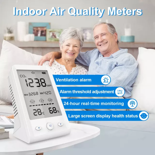 Unlike basic CO2 detectors, this device offers a complete 3-in-1 solution combining CO2 detection with temperature and humidity monitoring, providing a full environmental snapshot at a glance. Its fast response time and customizable alarm settings let you react quickly to poor air quality, while the USB rechargeable battery ensures convenience and portability. The simple design with facial icons makes it accessible for all users, making healthy indoor air easy to manage every day.