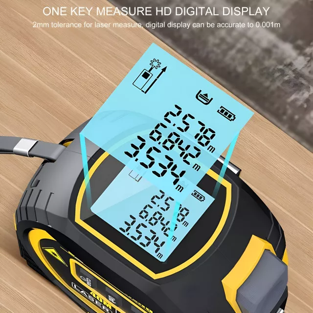 This tool isn’t just about numbers – it’s about making your work faster, easier, and more professional. Built with high-precision laser technology, it delivers measurements up to 131 feet (40 meters) with pinpoint accuracy. The integrated steel tape extends up to 16.4 feet (5 meters), making it ideal for close-range tasks, while the digital screen gives you instant readouts without any guesswork.