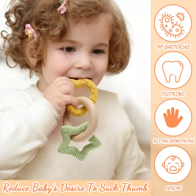 Unlike ordinary teethers, this 3-in-1 baby teether pairs a fun star shape with a natural wood ring and premium silicone for a multi-sensory experience. It’s not just a toy—it’s a tool for healthy oral development, better motor skills, and soothing comfort in one safe, stylish package.