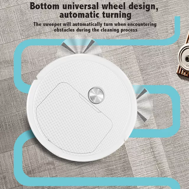Unlike ordinary vacuums, this robot features a true 3-in-1 system: it sweeps, vacuums, and mops in a single motion. The bilateral brushes pull in debris from corners, while strong suction power ensures thorough pickup. With a 1200mAh lithium battery, it offers up to 30 minutes of continuous cleaning after just 3 hours of USB charging. It also has intelligent obstacle avoidance and a universal bottom wheel that automatically redirects the robot when it encounters furniture or walls.