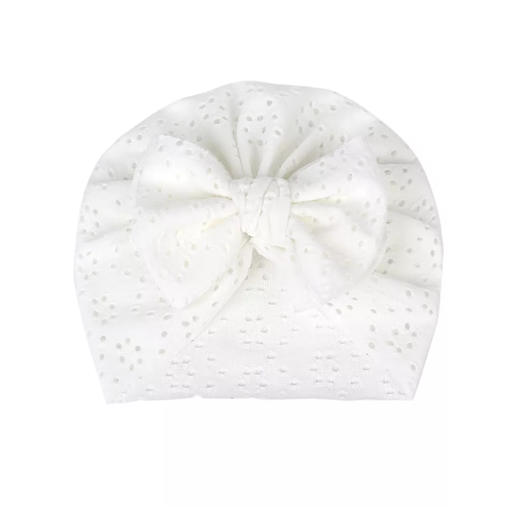 Unlike regular baby hats, our mesh turban caps are both stylish and functional. The hollow pattern promotes airflow, keeping your baby’s head from overheating, while the soft bow and flexible fit add charm and ease. These beanies are not only cute but thoughtfully designed to meet the needs of newborns and their busy parents.