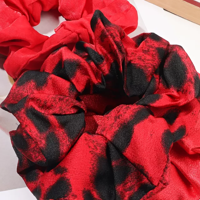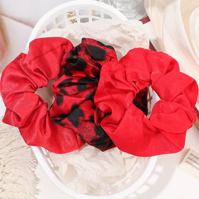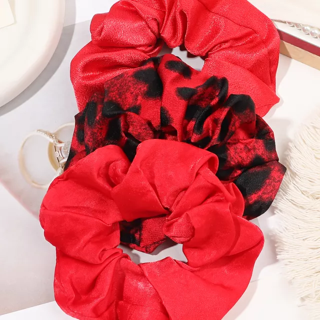 3-Pack Red Leopard Silk Scrunchies – Soft Elastic Hair Ties for Women
