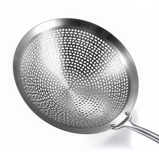 Discover a must-have kitchen tool that makes frying, straining, and scooping effortless. Whether you’re deep-frying crispy French fries, boiling dumplings, or scooping noodles, this 304 stainless steel skimmer strainer is your go-to utensil. Crafted from premium 18/8 food-grade stainless steel, it is built to last and withstands high heat without bending or rusting. With a wide mesh head and a long, ergonomic handle, this kitchen tool is designed to simplify your cooking process while keeping you safe from splashes and burns.