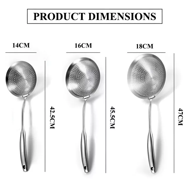 Stop fumbling with flimsy plastic scoops or awkward draining spoons. Add this stainless steel skimmer set to your kitchen and enjoy the ease of professional-grade cooking. Quick to use, easy to clean, and safe to handle—this is one tool you’ll reach for again and again.