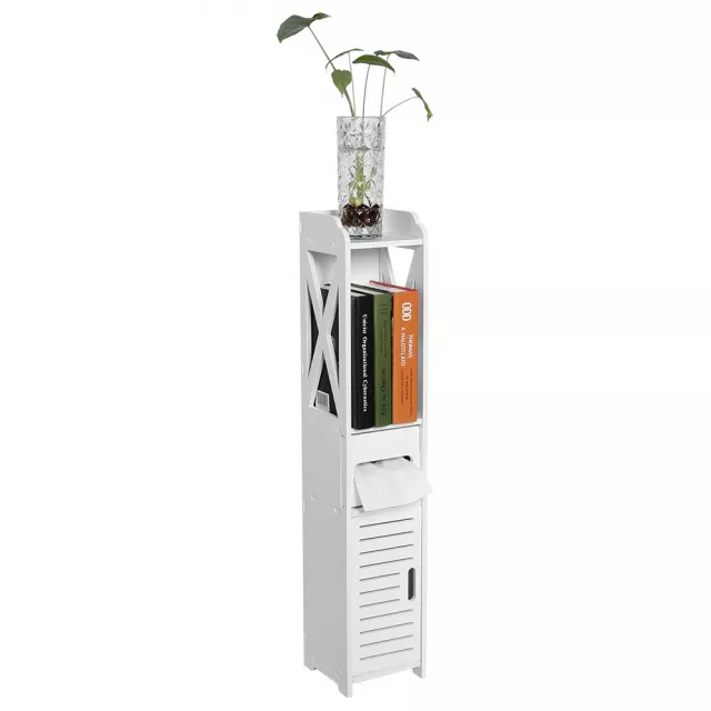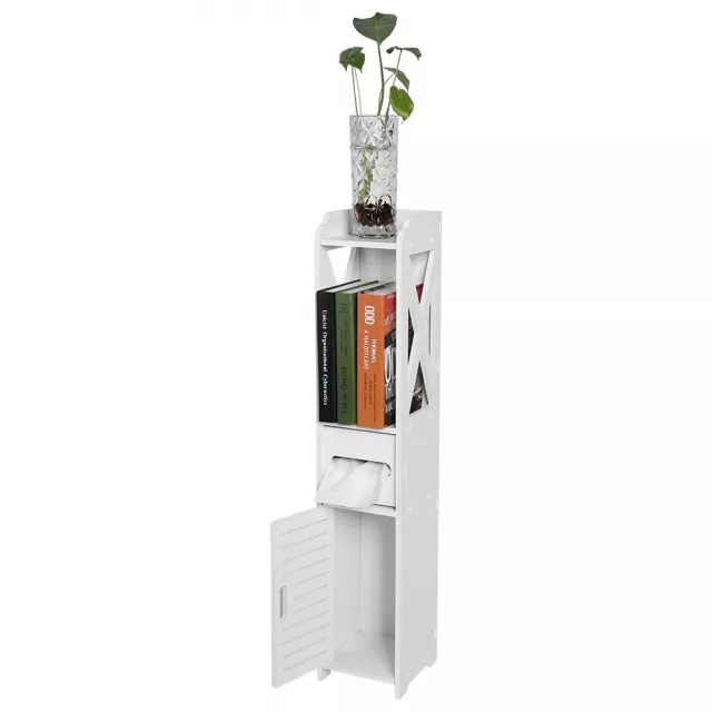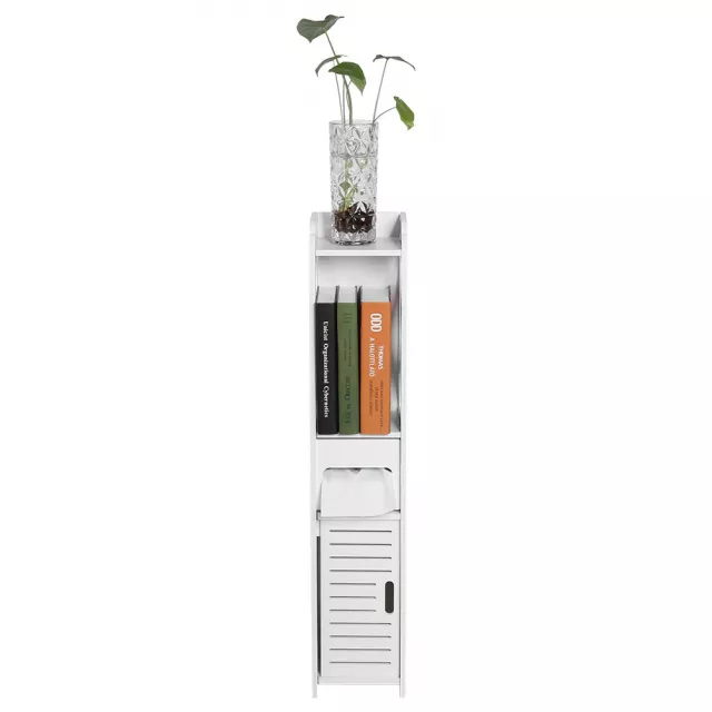 Transform cluttered countertops into a streamlined oasis with this sleek white storage cabinet. Designed to fit perfectly above your toilet, this vertical organizer provides three levels of smart storage while taking up minimal floor space. The crisp white finish blends seamlessly with any decor, creating a clean, spa-like atmosphere in your bathroom.
