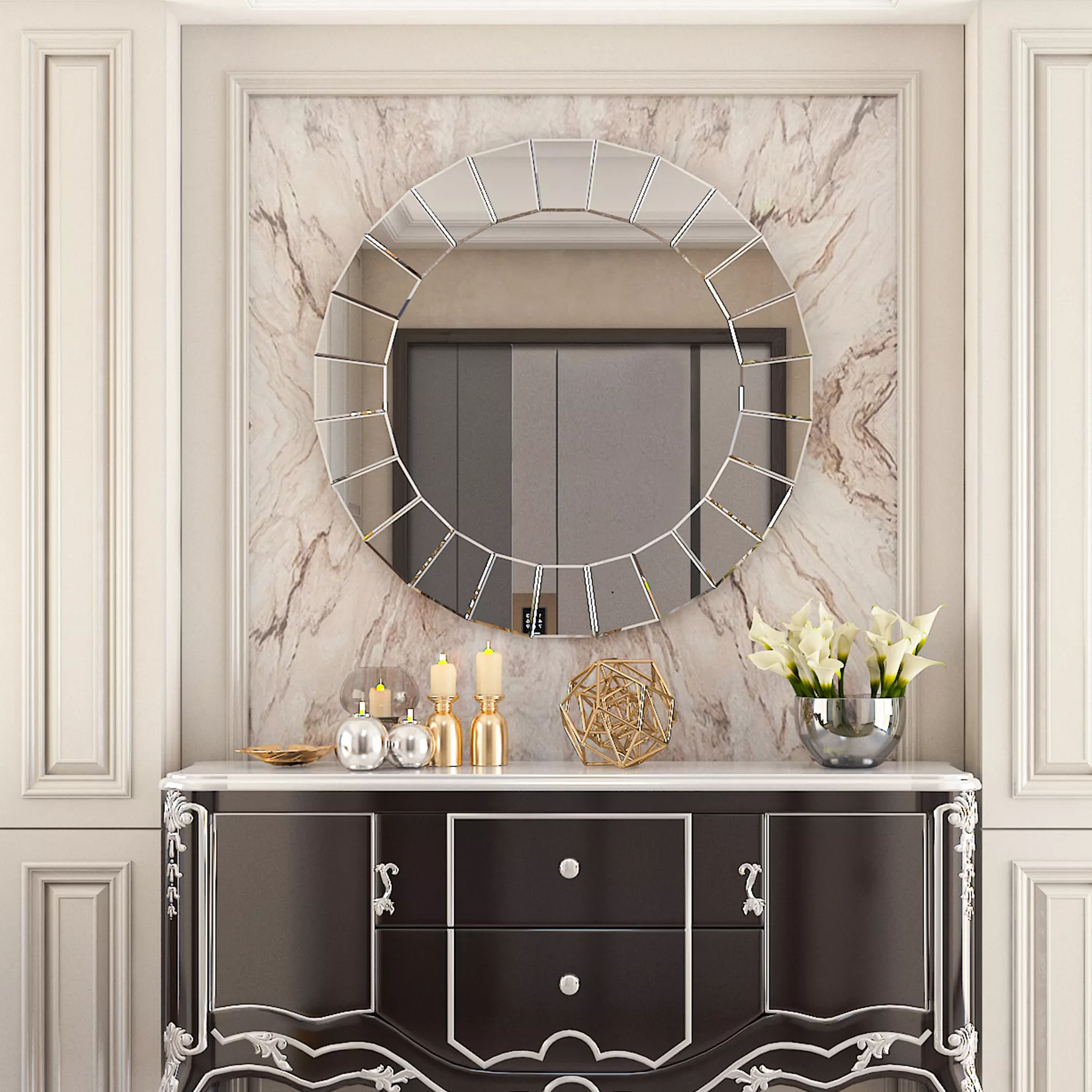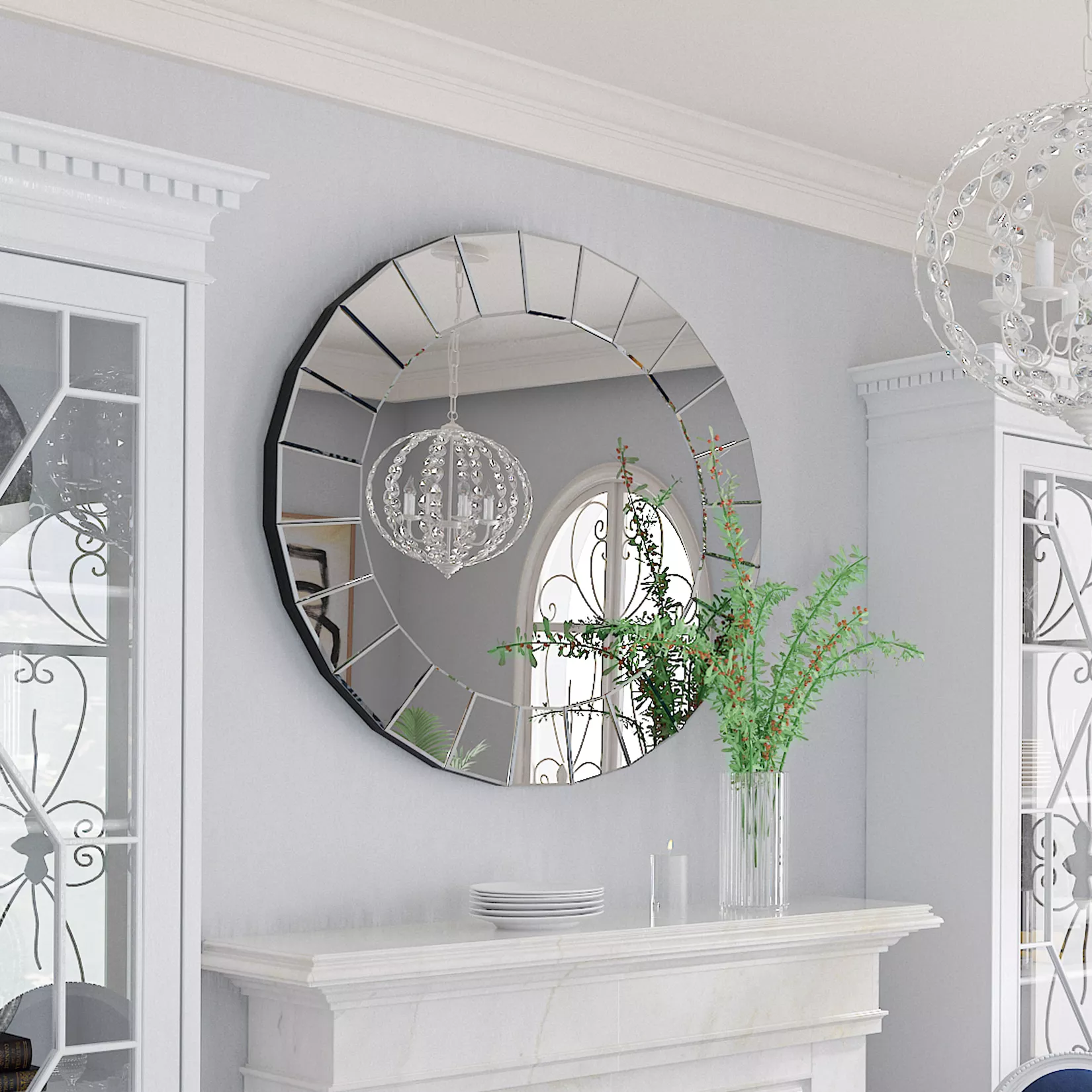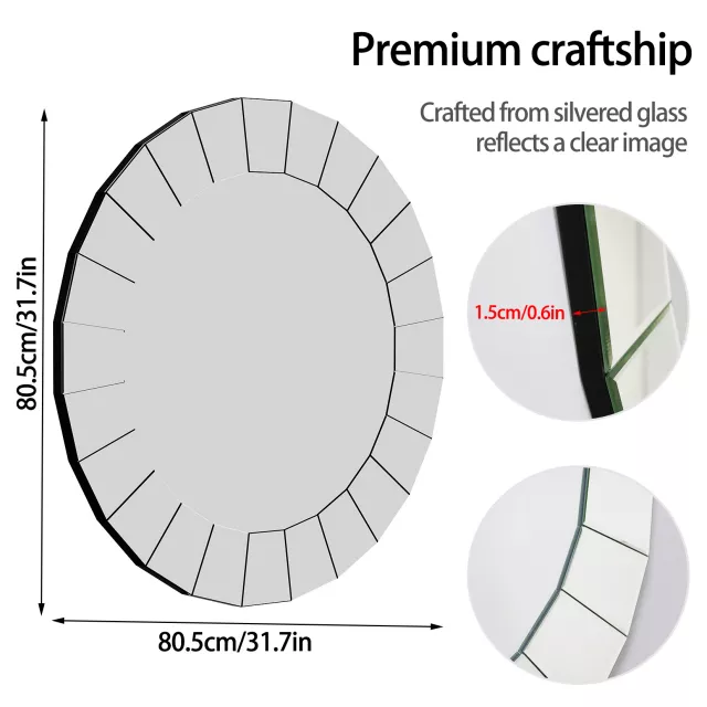 Bring a touch of modern luxury to your home with this stunning 32-inch Round Silver Wall Mirror. Designed to make a statement, this large decorative mirror features a sleek, silver finish and a sophisticated frameless design that blends effortlessly with contemporary, transitional, or even classic interiors. Whether you’re styling your entryway, hallway, living room, or bedroom, this mirror adds instant brightness and depth to any wall it graces.