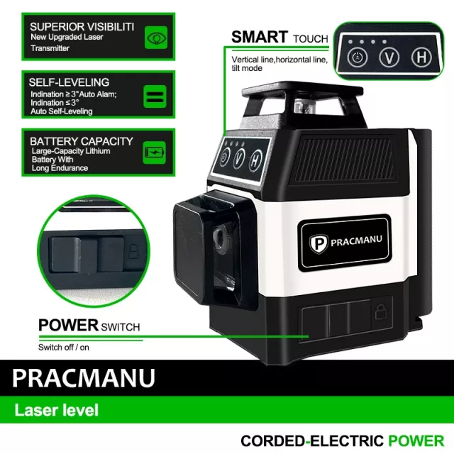 This laser level is best used for both indoor and outdoor projects where exact measurement and alignment are critical. Whether you’re framing walls, setting tiles, or installing drop ceilings, its comprehensive coverage simplifies complex setups. The powerful 520NM wavelength ensures vibrant green laser lines that are clearly visible, minimizing strain and maximizing efficiency.