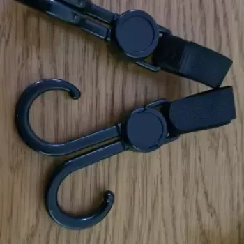 Makes outings easier. No more juggling bags thanks to these hooks!