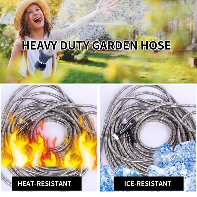 Engineered with 304 food-grade stainless steel, this hose offers outstanding rust resistance and can withstand high water pressure without bending or deforming. The flexible metal design allows smooth rotation and full-range movement—no more tangled messes or blind spots while watering. Its quick-connect interface is universally compatible with 3/8 inch water fittings, and the built-in rubber gasket ensures a leakproof connection in just seconds.