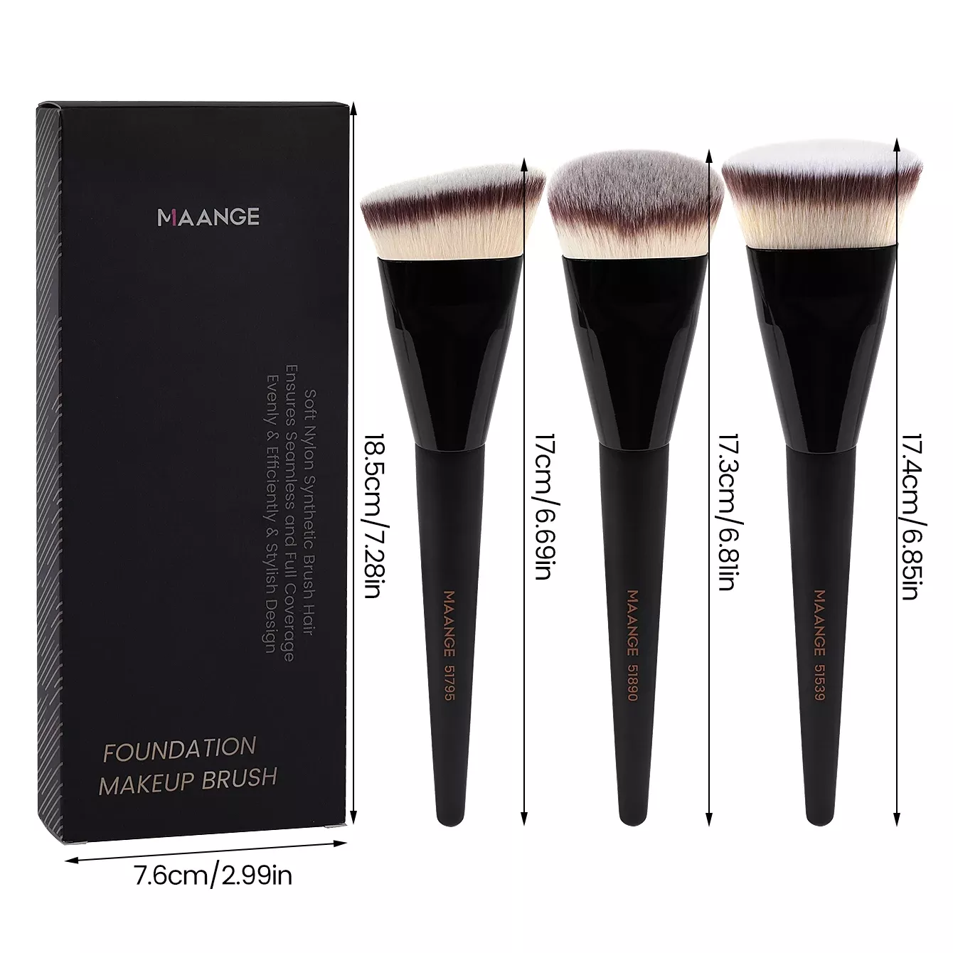 3pcs Foundation Brush Set – Angle, Round & Flat Head Makeup Tools with Case