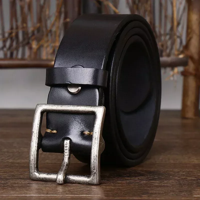 I recently purchased this 4.3cm thick genuine cowhide leather belt and it has exceeded all my expectations! The moment I laid hands on it, I could tell that the quality was top-notch. It's made from premium cowhide which feels incredibly rich and sturdy to touch, yet flexible enough for comfortable daily wear. The copper buckle is a beautiful addition that adds an element of timeless style to the overall design; it’s not just functional but also aesthetically pleasing. What sets this belt apart though, is its versatility - whether you're going for a casual look or dressing up for a business meeting, this belt complements every outfit perfectly. Over time, I've noticed how well the natural leather breathes and ages, giving it a personalized touch that grows on you.