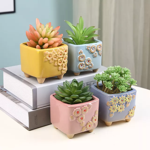Brighten up your indoor space or garden nook with this beautifully crafted 4-piece set of Square Ceramic Succulent Pots. Designed with a charming floral pattern and soft pastel tones of yellow, purple, blue, and pink, these mini planters are perfect for adding a fresh, artistic touch to any tabletop, windowsill, or balcony display.
