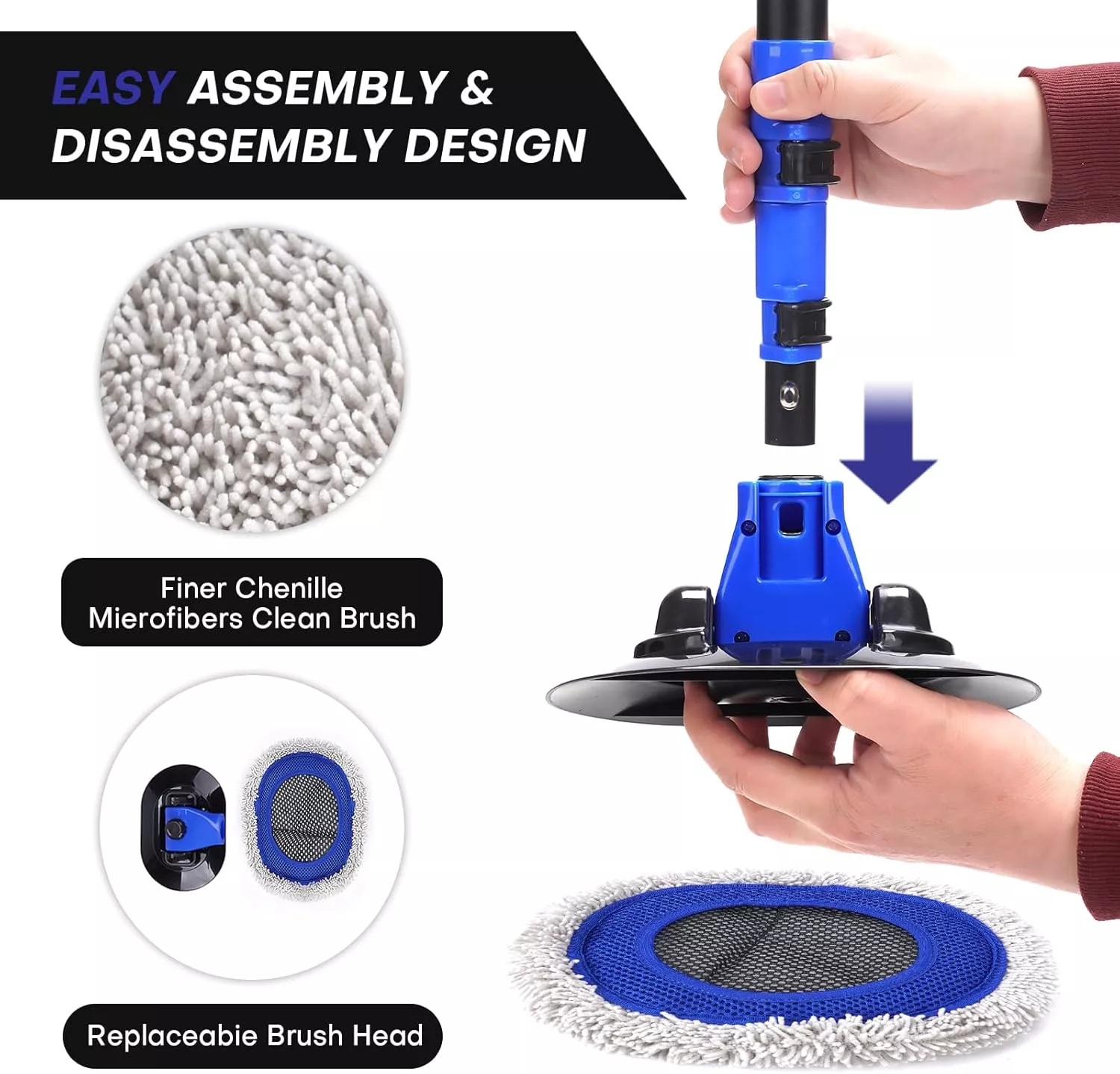 This brush is a lifesaver! With its long handle and chenille cleaning head, I can now reach all the nooks and crannies of my car without straining myself. A must-have for any car owner!
