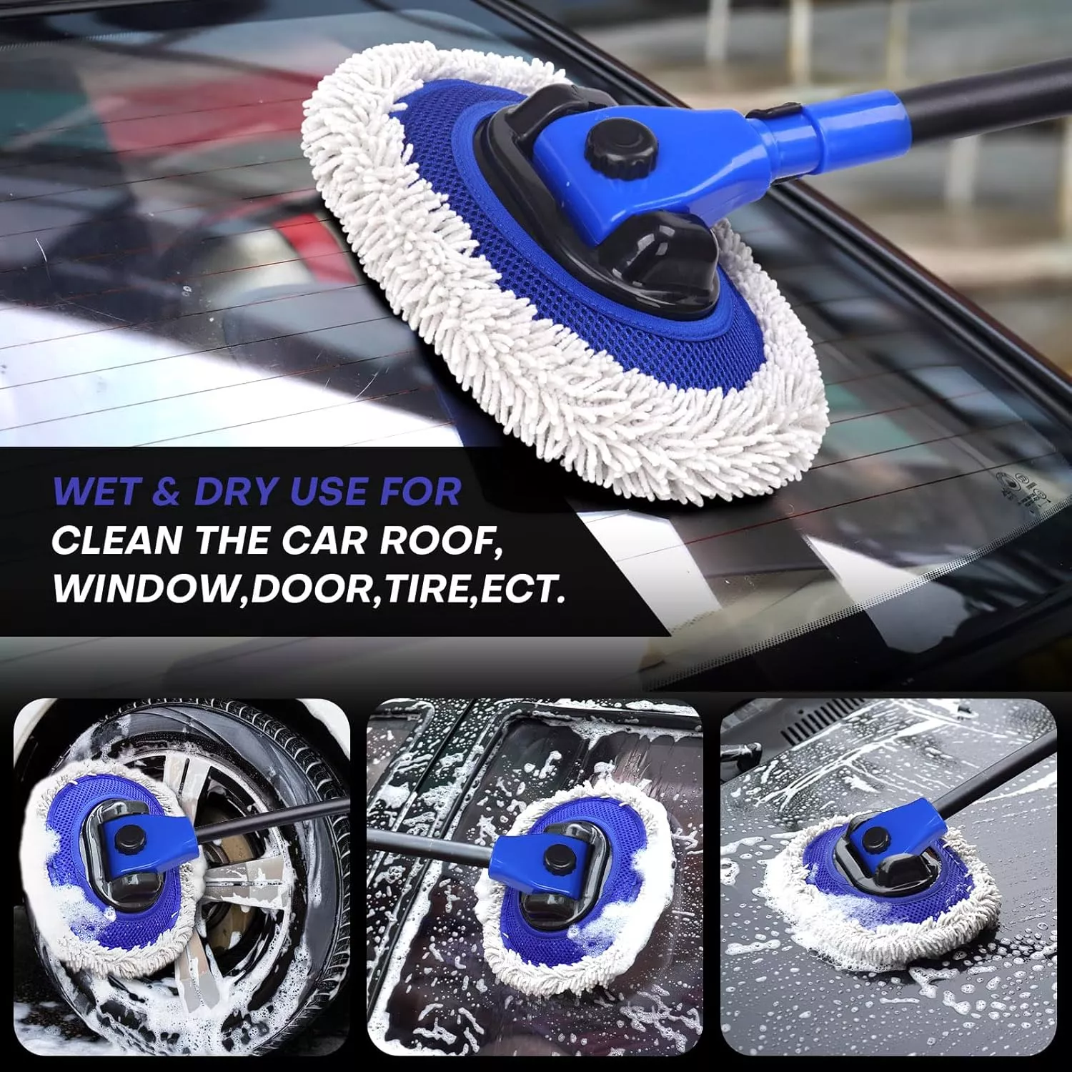this brush has made cleaning my car so much easier. it's telescopic handle extends far enough to clean even the top of my suv. plus, the chenille head does an amazing job at picking up dirt and grime.