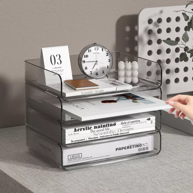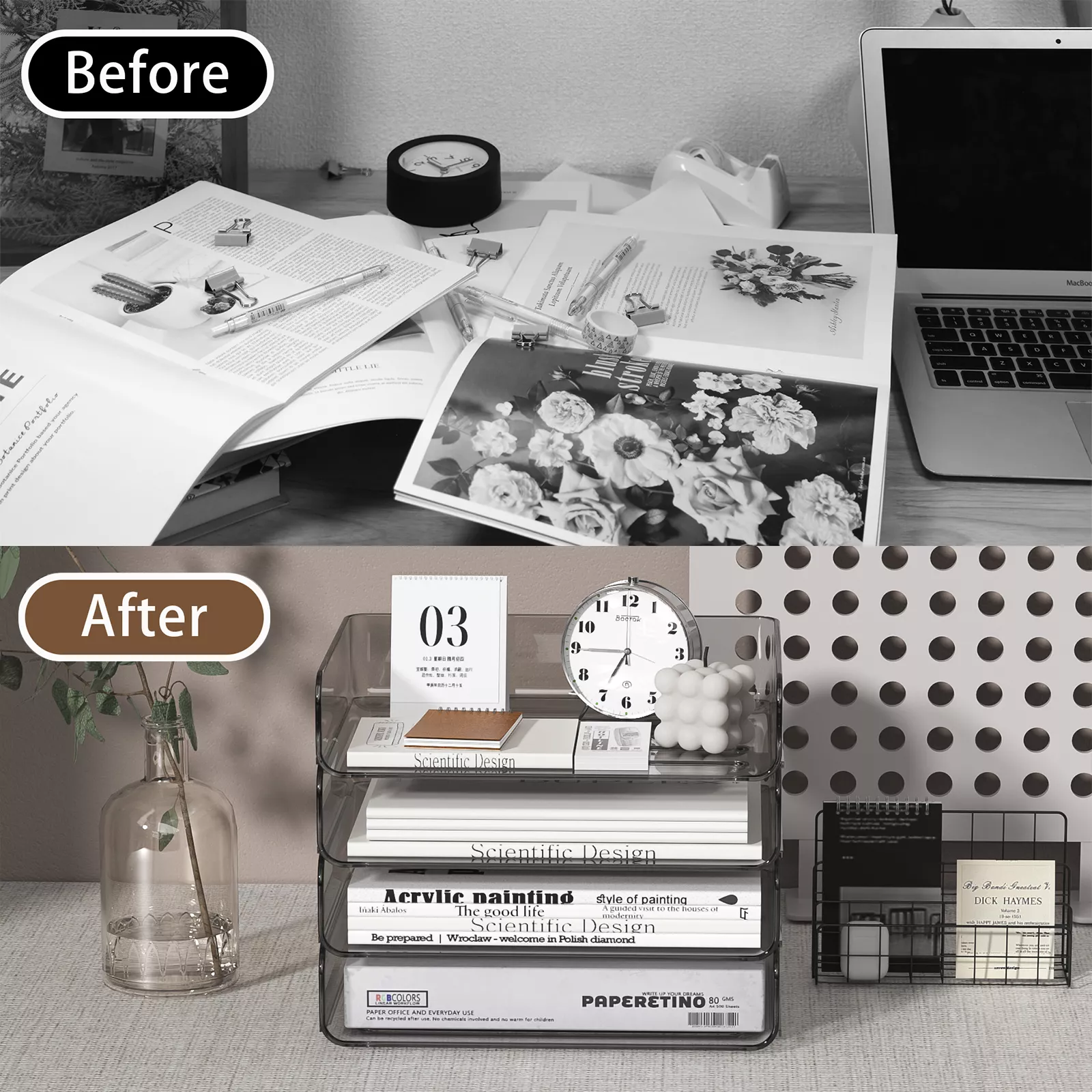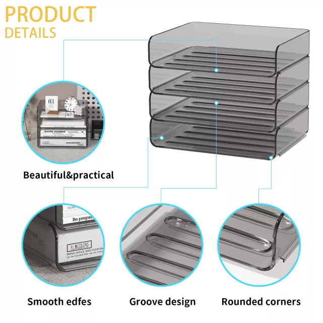 • 4 Spacious Stackable Trays – Perfect for sorting documents, letters, or folders