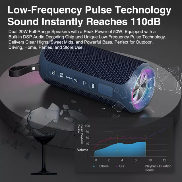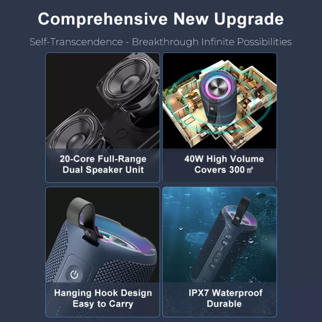Built to impress, this speaker packs dual 20W full-range drivers and dual passive radiators to create a sound experience that feels bigger than life. Thanks to Bluetooth 5.3, you get lightning-fast, stable connections up to 66 feet away. Rain, splashes, or even submersion in water won’t stop the music—the IPX7 waterproof rating ensures it can handle it all. And with up to 30 hours of playtime on a single charge, the fun never has to stop.