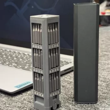 Love how each bit fits securely onto its designated spot inside the portable aluminum case reducing clutter significantly. Plus swapping out bits couldn't be easier thanks to an eject button built right into the case itself! Talk about thoughtfully designed products...
