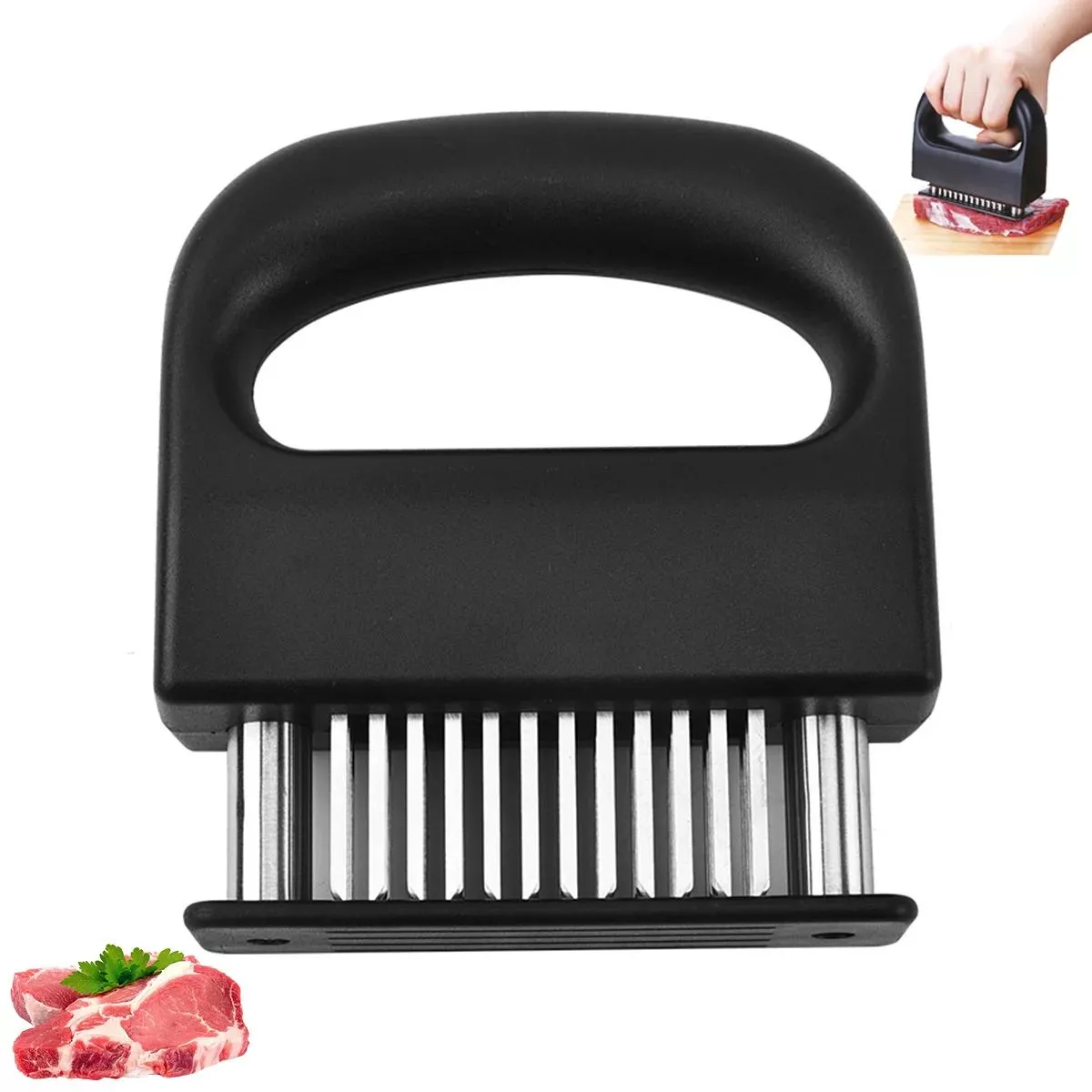Say goodbye to tough, chewy cuts and hello to tender, flavor-packed meals with this 48-Blade Stainless Steel Meat Tenderizer. Whether you’re prepping steaks, pork chops, turkey breasts, or even fish fillets, this kitchen essential transforms your meats into juicy, restaurant-quality dishes — right at home.