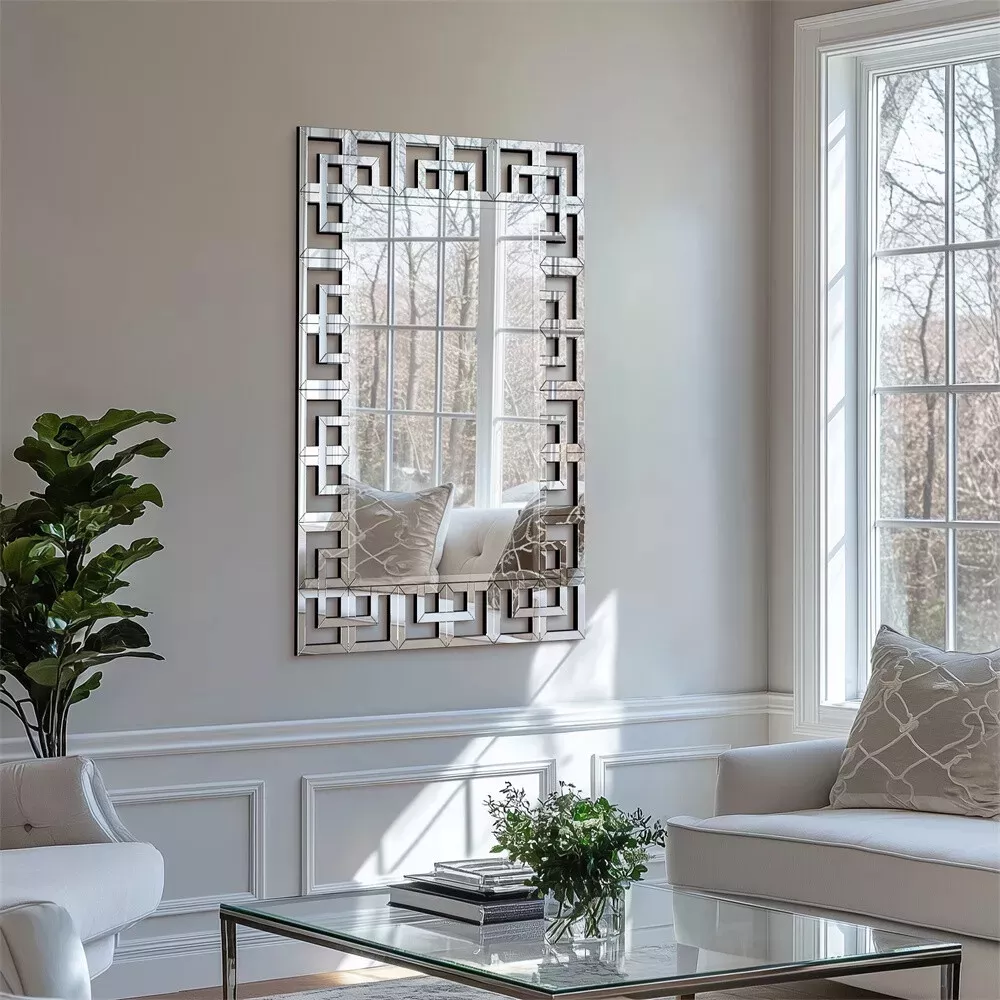 Elevate your home decor with the timeless beauty of this 48” x 28” Rectangular Venetian Wall Mirror. Designed to impress, this decorative mirror brings together modern elegance and classic charm. With its gleaming silver finish and intricately beveled edges, it creates a striking focal point for any room—whether it’s your living room, entryway, bedroom, or above a fireplace mantel. The reflective surface catches and bounces light beautifully, making even the smallest space feel open, bright, and welcoming.