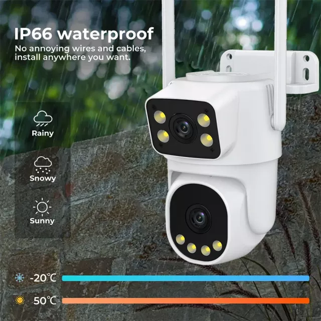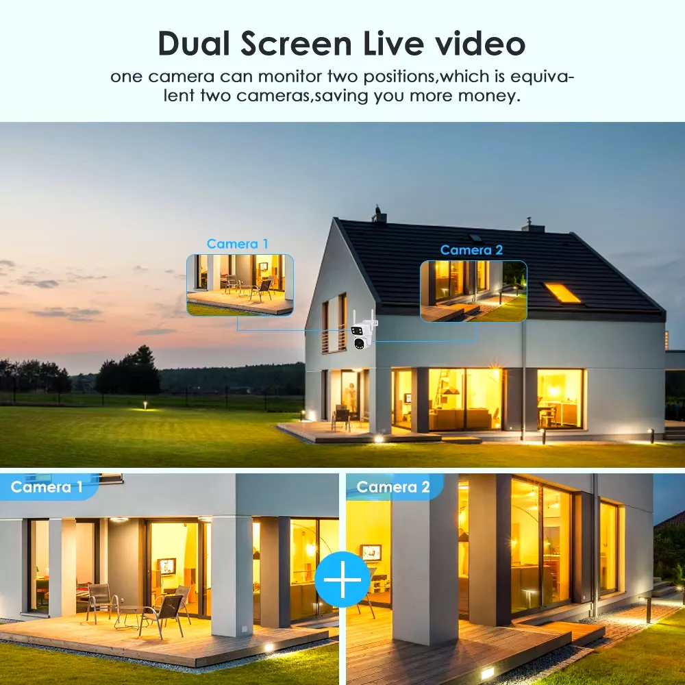 What makes this camera truly special is its ability to do the job of two cameras in one compact unit. Thanks to the dual-lens setup, you can view a wide-angle scene and zoom into specific areas without switching cameras. The dual-screen app lets you control and view both perspectives at once — maximizing coverage and saving on costs.