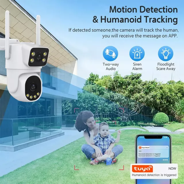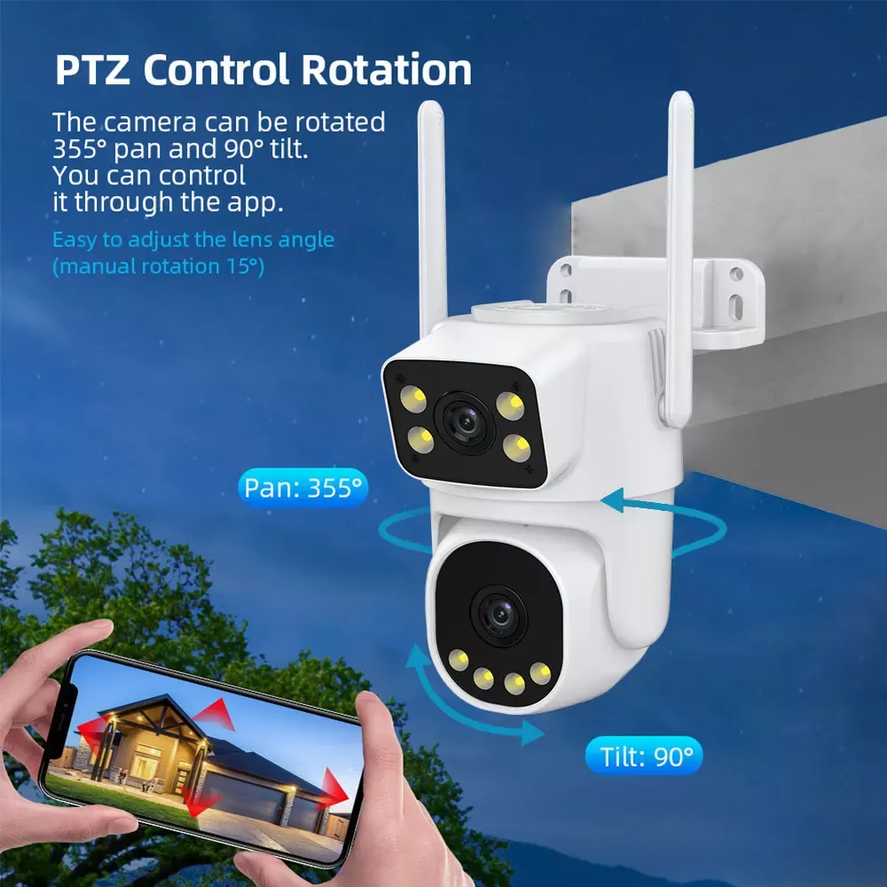 Equipped with both 5GHz and 2.4GHz WiFi support, this camera ensures a strong, fast, and reliable connection. Whether you’re monitoring your front door, backyard, driveway, or business premises, the high-performance gives you razor-sharp image clarity. The dual-lens design lets you see wide and far simultaneously with one screen for a fixed view and the other for pan-tilt-zoom (PTZ) control, all from the convenience of your smartphone via the Tuya app.