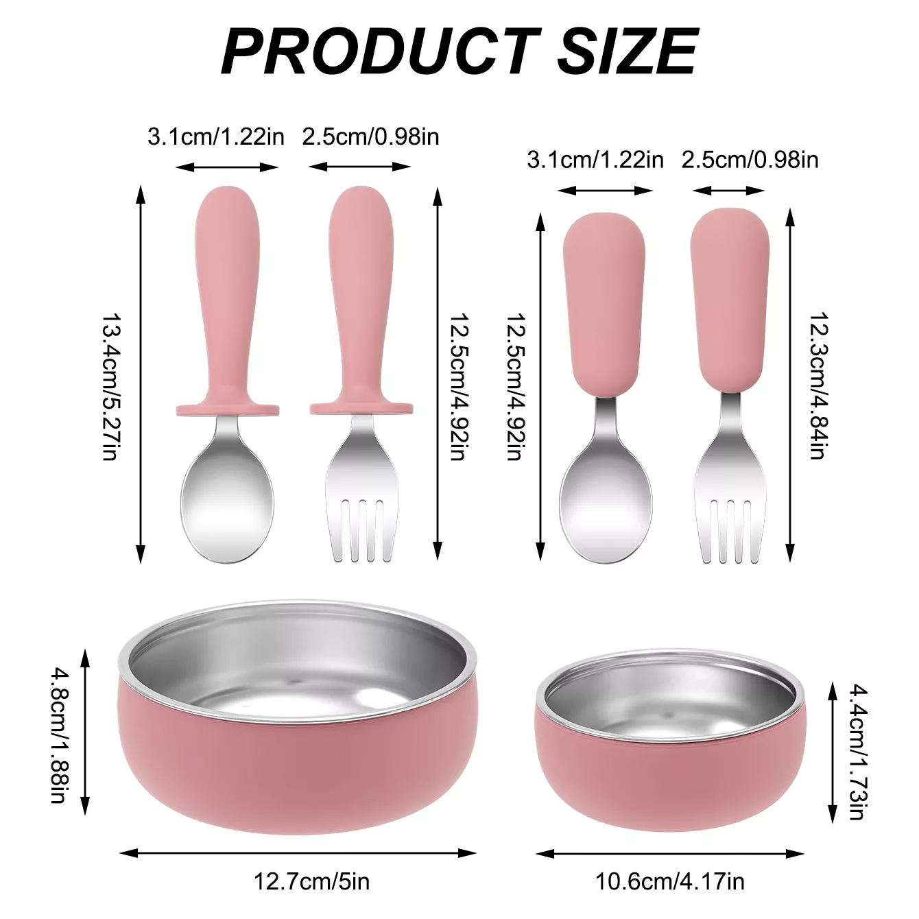 Built with a durable stainless steel interior and soft, food-grade silicone exterior, each piece is gentle on baby’s hands and gums while offering the strength and hygiene of stainless steel. It’s completely free from BPA, latex, PVC, phthalates, and other harmful chemicals — giving you peace of mind with every meal.